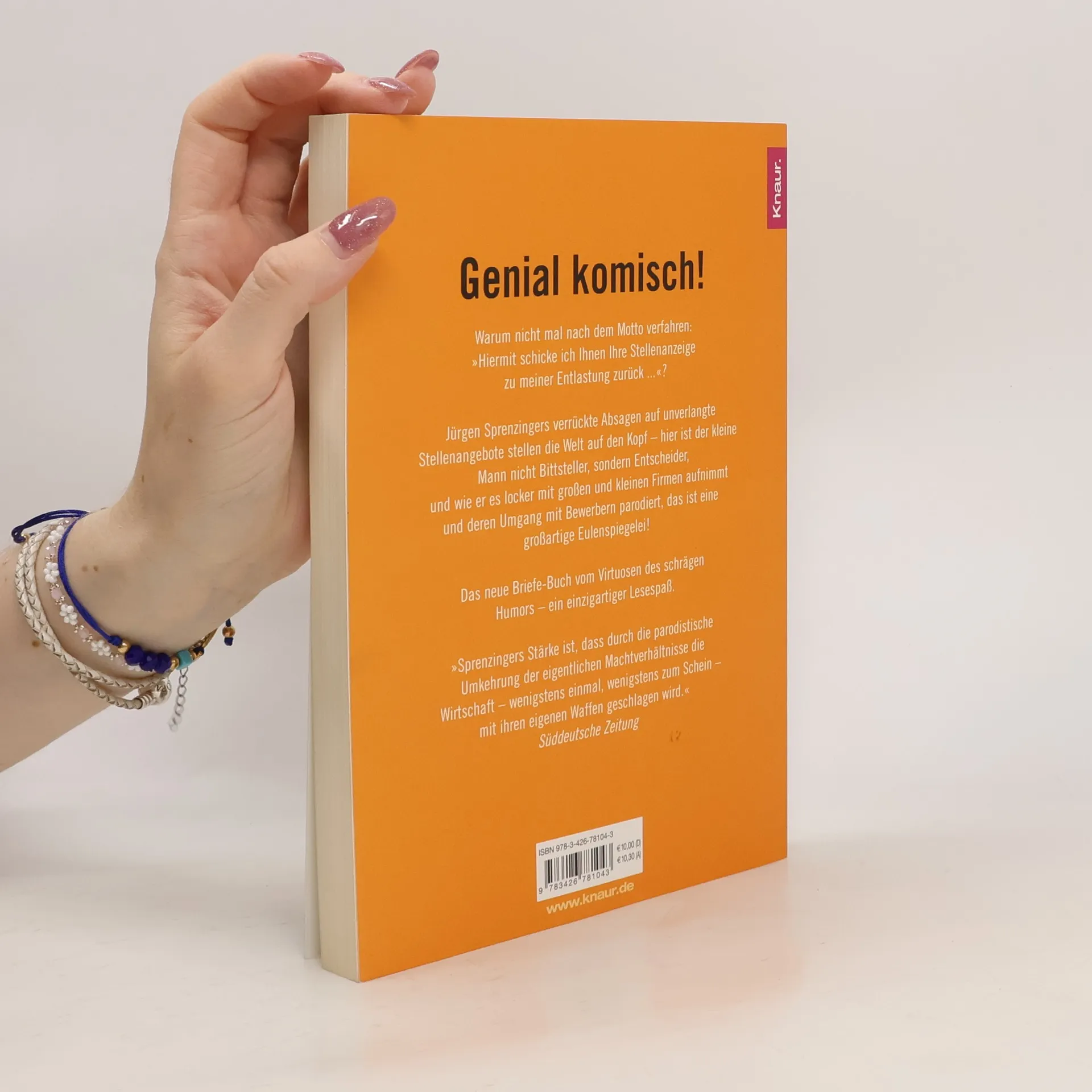 Warum nicht mal nach dem Motto verfahren: 'Hiermit schicke ich Ihnen Ihre Stellenanzeige zu meiner Entlastung zurück.'? Jürgen Sprenzingers verrückte Absagen auf unverlangte Stellenangebote stellen die Welt auf den Kopf – hier ist der kleine Mann nicht Bittsteller, sondern Entscheider, und wie er es locker mit großen und kleinen Firmen aufnimmt und deren Umgang mit Bewerbern parodiert, das ist eine großartige Eulenspiegelei! Das neue Briefe-Buch vom Virtuosen des abstrusen Humors.