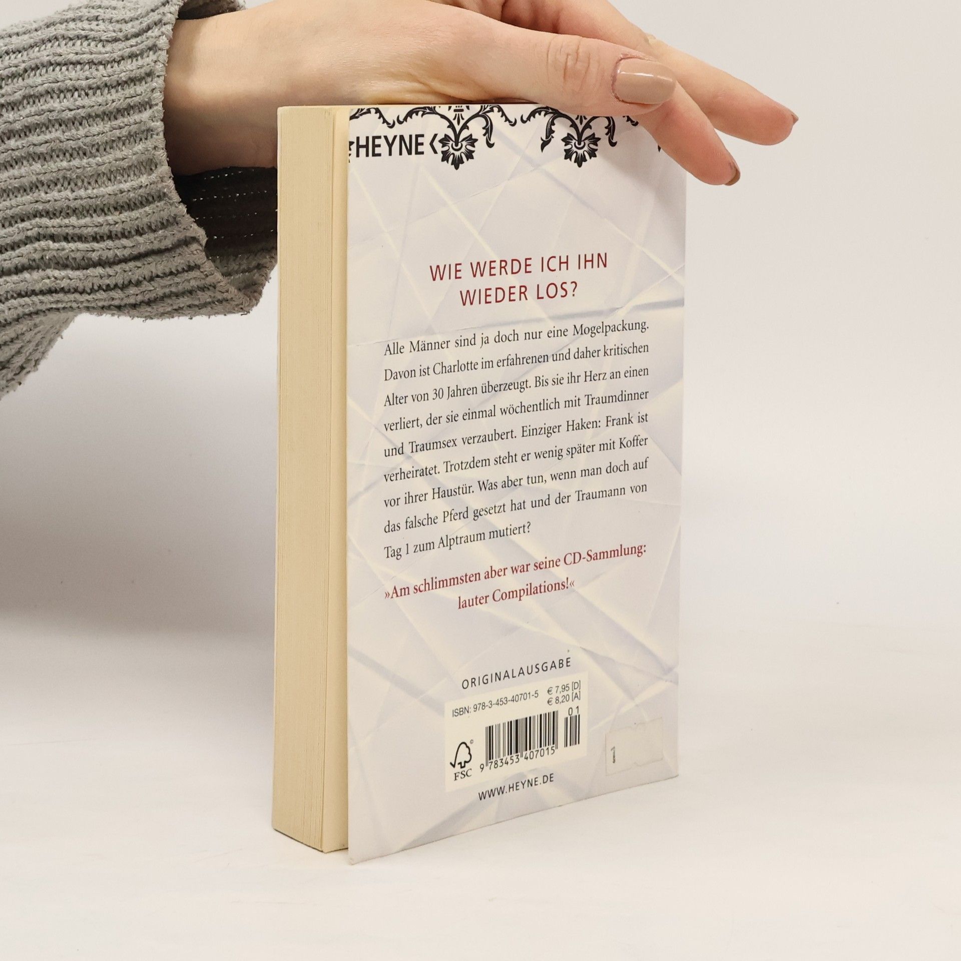 Alle Männer sind doch nur eine Mogelpackung. Davon ist Charlotte im erfahrenen und daher kritischen Alter von 30 Jahren überzeugt. Bis sie ihr Herz an einen verliert, der sie einmal wöchentlich mit Traumdinner und Traumsex verzaubert. Einziger Haken: Frank ist verheiratet. Trotzdem steht er wenig später mit Koffer vor ihrer Haustür. Was aber tun, wenn man doch auf das falsche Pferd gesetzt hat und der Traummann von Tag 1 zum Alptraum mutiert?Charlotte Hansen: verliebt (gewesen) und hoffentlich bald Single.