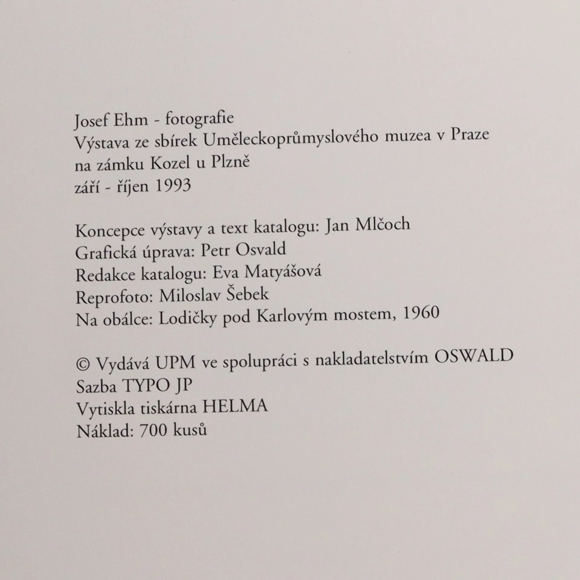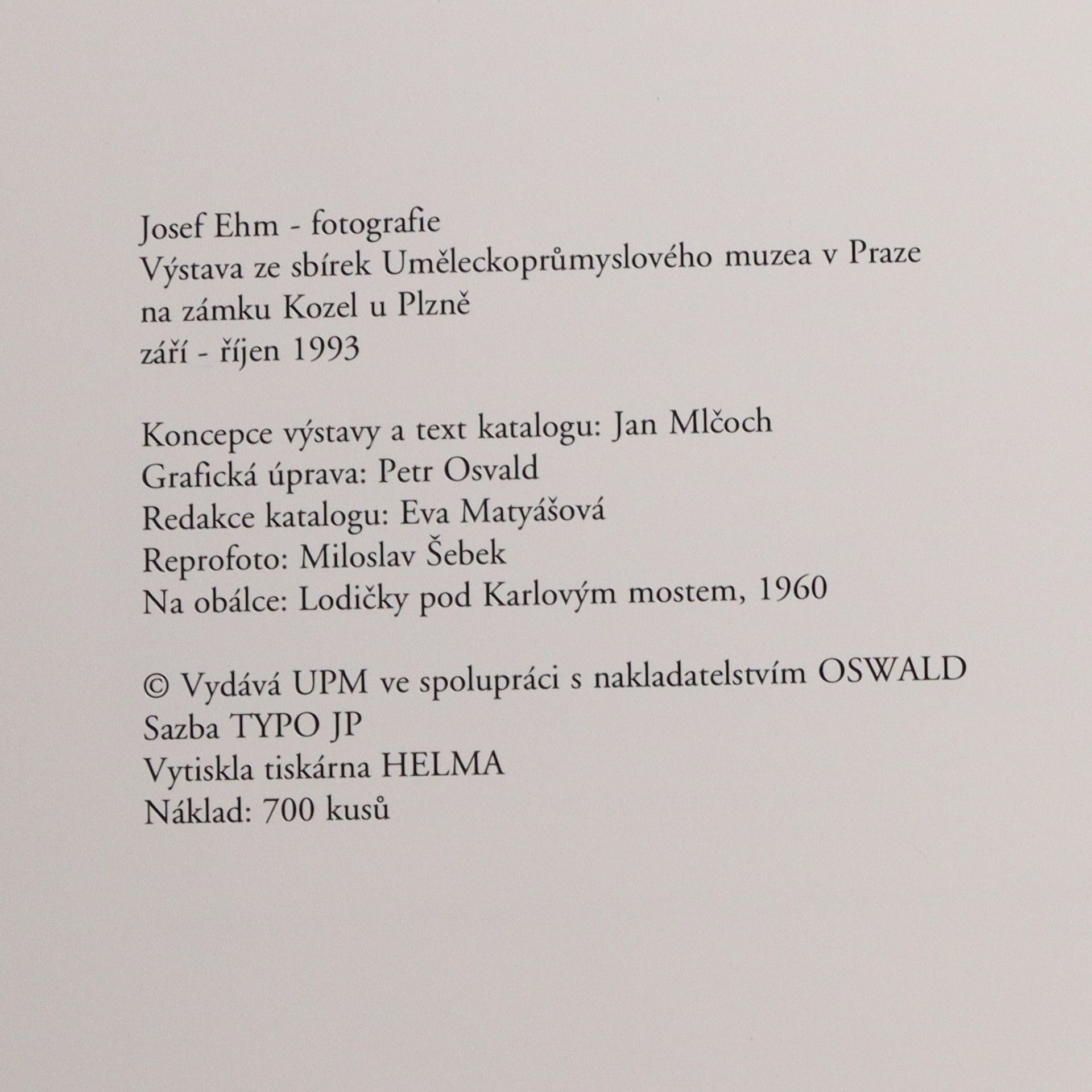 Josef Ehm : fotografie : výstava ze sbírek Uměleckoprůmyslového muzea v Praze, Jan Mlčoch