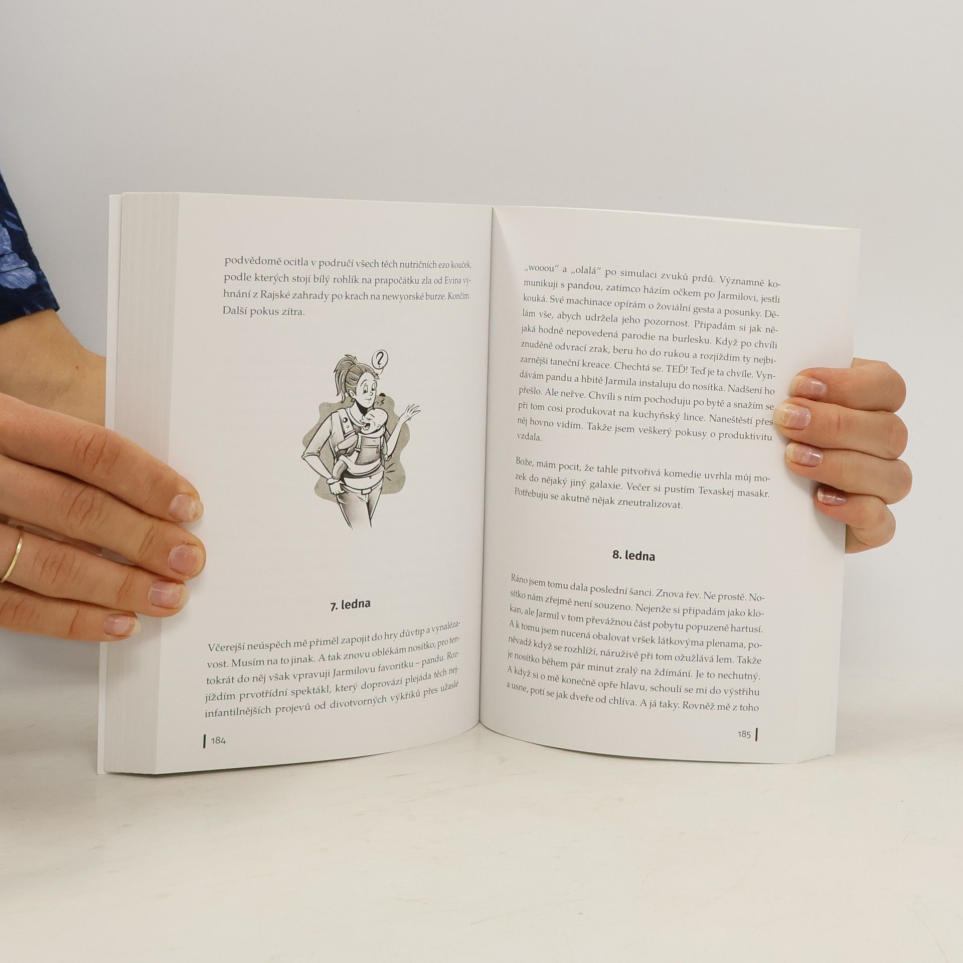 Porodila jsem. Události rázem nabraly nečekaný spád. Bum, prásk, dítě a k němu nepřeberné množství informací. Můj mozek hlásí ihned v prvních hodinách přetížení. Kdo mohl čekat, že toho bude tolik. Je to dítě! Není to urychlovač částic. Vyděsilo mě to. Člověk si maluje pozvolný rozjezd, poetický začátek v opojení lásky a vděčnosti, nové poměry však neposkytují ani poskrovnu prostoru pro asimilaci. A než se stihnete zorientovat, strčí vám do ruky mimino s výrazem „nasávej, uč se a plav“. A tak instinktivně zapnete autopilota a tváříte se, že víte, co děláte. Ač ve skutečnosti nemáte páru, co dělá pravá a co levá, vyhodnocujete situace na základě amatérských domněnek a modlíte se, aby vše klaplo. Stala se ze mě matka. Pro tuto roli jsem se zrodila. Mám vaječníky a tak. Jsem tutově předurčená býti matkou. Ale popravdě, jak bych to tak…Nemám do psí díry šajna, co se tady děje!