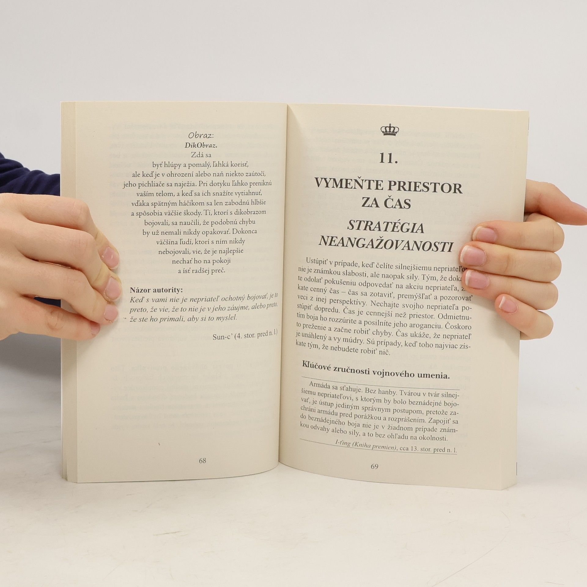 Odvážna kniha o odvekej súčasti ľudského života – o boji, víťazstve aj prehre. V našom súčasnom svete stále prebiehajú nejaké konflikty, ktoré sa nás viac-menej dotýkajú. Okrem toho každý z nás aj vo svojom osobnom živote pravidelne s niečím bojuje. Autor vychádza zo skvelej znalosti ľudskej povahy i potrieb dnešnej doby. V 33 kapitolách predkladá stratégie a kľúčové schopnosti, ktoré vedú k úspechu. Tie podkladá citátmi slávnych osobností, akými boli napríklad Napoleón či Winston Churchill, a najmä cituje zo starého čínskeho diela Umění války, ktoré napísal Sun-c’ v 4. st. pr. n. l.