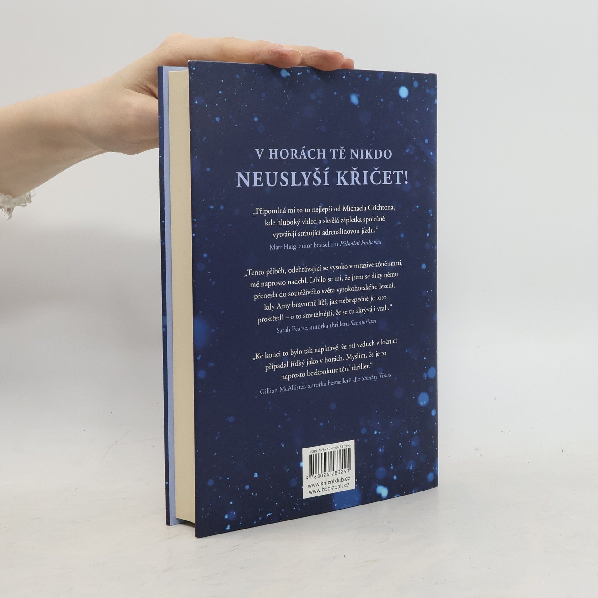 Thriller, ze kterého dostanete závrať! Novinářka Cecily se vydává se skupinou odvážlivců do Himálaje, aby pokořila jednu z nejvyšších hor světa. Plánuje o náročném výstupu napsat reportáž, která ji konečně proslaví. Kvůli této cestě se vzdala mnohého – vztahu i úspor –, ale věří, že se to vyplatí. Když jeden z horolezců zemře, všichni to považují za tragickou nehodu. Každý ví, že hory jsou nemilosrdné. Jenže poté co se najde další mrtvý, Cecily pochopí, že kromě nelítostné zimy, vichru a ledu tady číhá ještě jedno nebezpečí – vrah! V této nadmořské výšce vás policie neochrání. Nikdo vás neuslyší volat o pomoc. A když si Cecily nedá pozor, další na řadě bude ona…