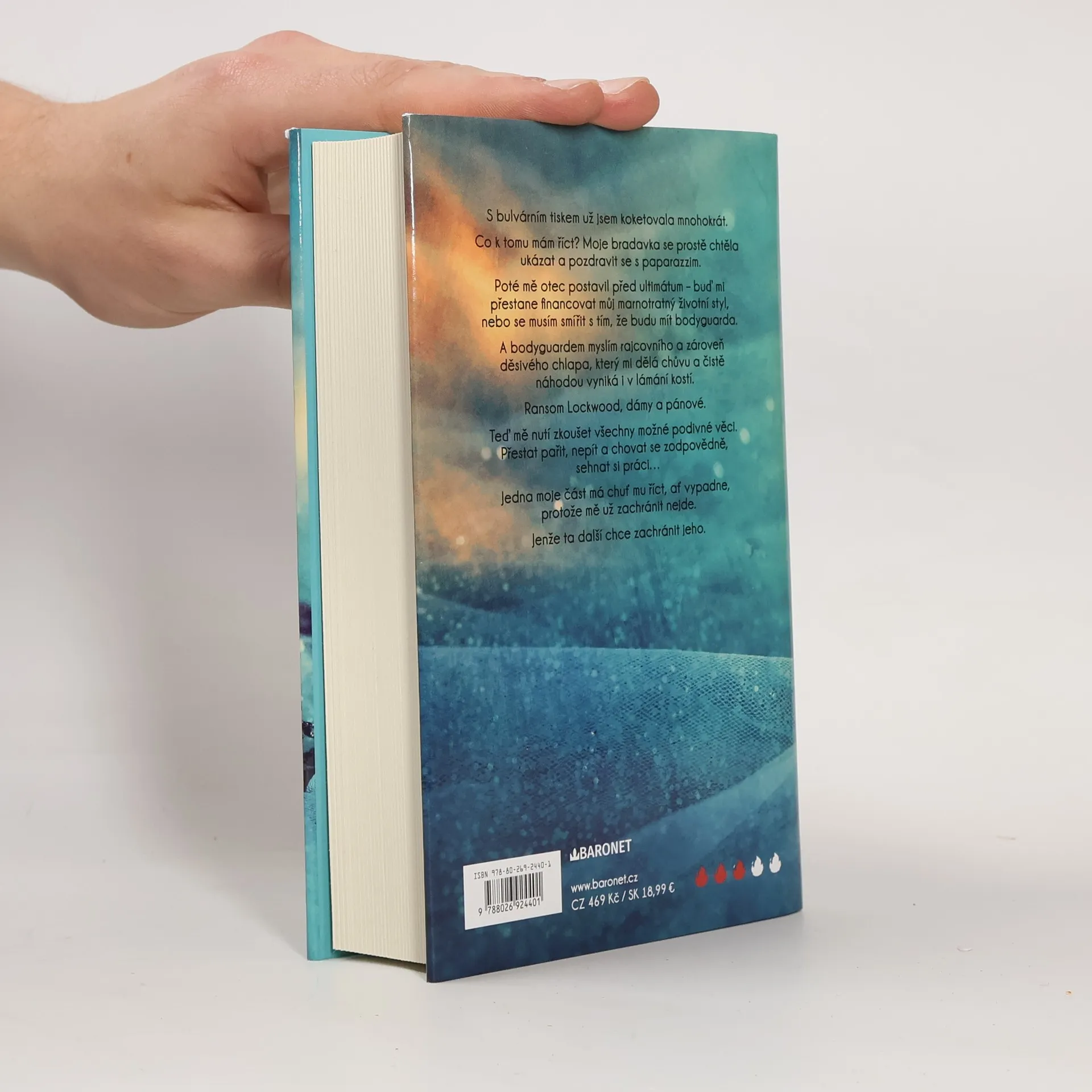 Příběh s romantickou zápletkou od americké autorky. Hallie a její divoký život královny večírků musí nutně jednoho dne skončit. A ta chvíle právě přišla spolu s okouzlujícím, ale nebezpečným bodyguardem Ransomem Lockwoodem. Nebudu si hrát na nevinnou, až příliš často jsem se dostala do hledáčku bulváru. A po tom posledním incidentu s bradavkou mi otec dal ultimátum: buď přestane platit můj okázalý životní styl, nebo si nechám přidělit bodyguarda. Ransom Lockwood, dámy a pánové. Sexy nabušený tělesný strážce, který mě teď nutí, abych přestala pařit a uklidnila se... Jedna moje část by ho nejradši poslala do háje. A ta druhá? Ta ho chce zachránit. Nevím, jak to dopadne, ale jedno je jisté - než to zjistím, užiju si dost zábavy. Nakladatelská anotace.