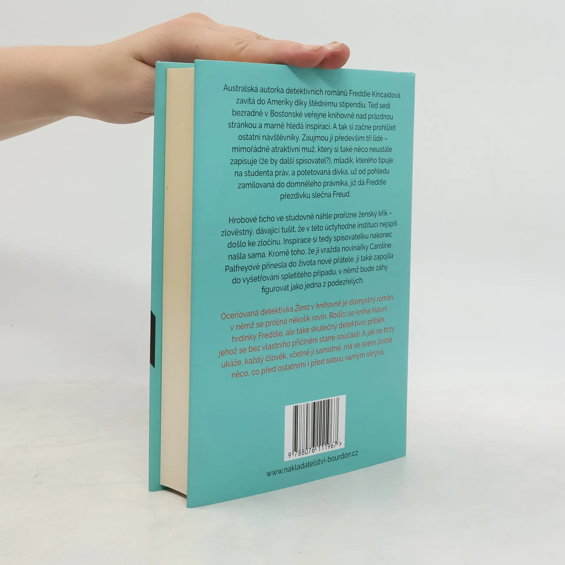 Australská autorka detektivních románů Freddie Kincaidová zavítá do Ameriky díky štědrému stipendiu. Teď sedí bezradně v Bostonské veřejné knihovně nad prázdnou stránkou a marně hledá inspiraci. A tak si začne prohlížet ostatní návštěvníky. Zaujmou ji především tři lidé - mimořádně pohledný muž, který si také něco neustále zapisuje (že by další spisovatel?), mladík, kterého tipuje na studenta práv, a potetovaná dívka, už od pohledu zamilovaná do domnělého právníka, jíž dá Freddie přezdívku slečna Freud. Hrobové ticho ve studovně náhle prořízne ženský křik - zlověstný, dávající tušit, že v této úctyhodné instituci nejspíš došlo ke zločinu. Inspirace si tedy spisovatelku nakonec našla sama. Kromě toho, že jí vražda novinářky Caroline Palfreyové přinesla do života nové přátele, ji také zapojila do vyšetřování spletitého případu, v němž bude záhy figurovat jako jedna z podezřelých. Oceňovaná detektivka Žena v knihovně je důmyslný román, v němž se prolíná několik rovin. Rodící se kniha hlavní hrdinky Freddie, ale také skutečný detektivní příběh, jehož se bez vlastního přičinění stane součástí. A jak se brzy ukáže, každý člověk, včetně jí samotné, má ve svém životě něco, co před ostatními i před sebou samým skrývá.