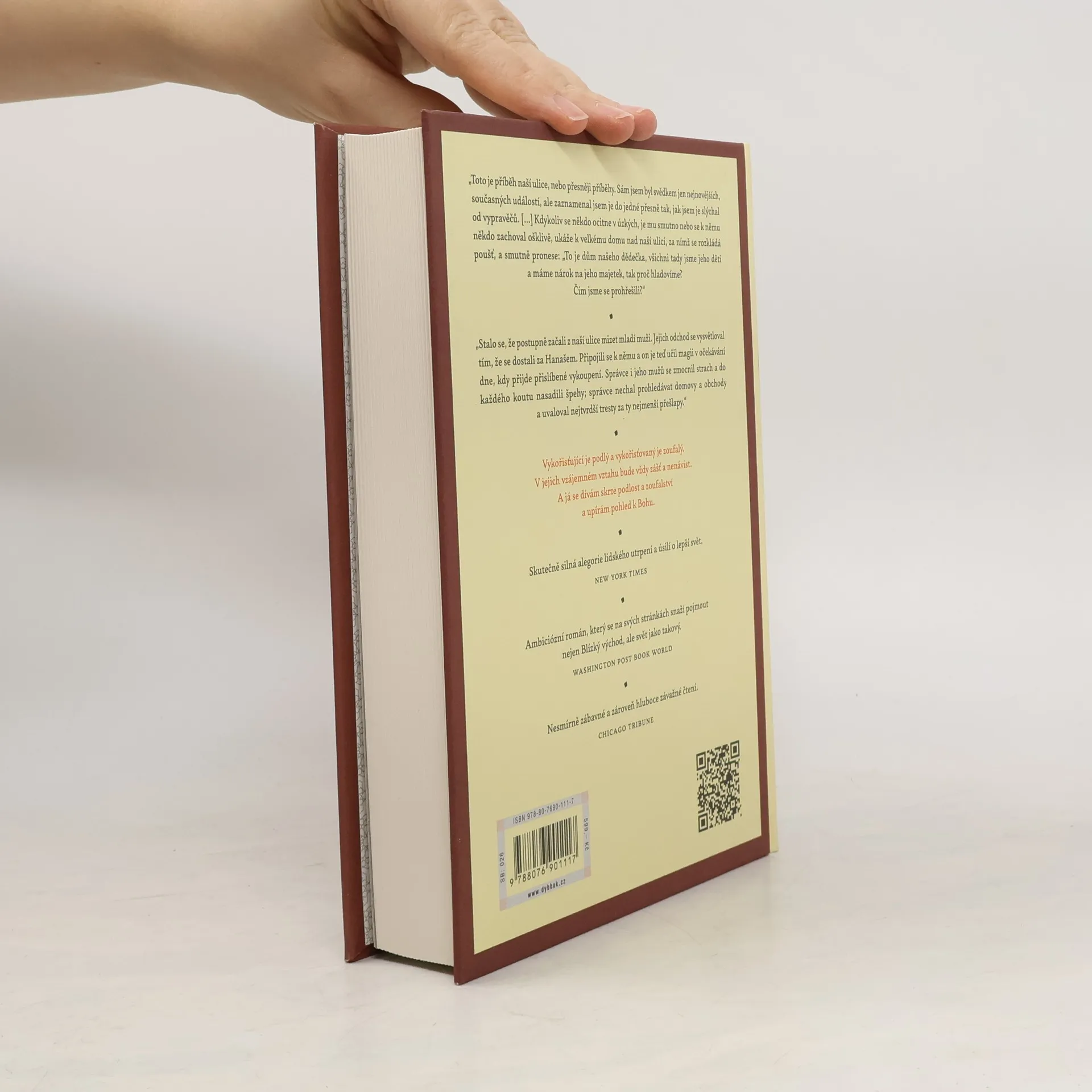 Na začátku nebylo nic, jen pustina, v níž se tyčil dům mocného Gabaláwího, otce čtyř synů. Slabosti neoddělitelně spjaté s lidskou podstatou vedou k vyhnání nejstaršího ze synů, jehož posléze do pouště následuje i syn nejmladší. Rodí se věčná touha po návratu do velkého domu našeho otce, kde jsme mohli žít v radosti a v blaženosti, jejichž míru jsme si dokázali uvědomit teprve, když jsme o ni přišli… Děti naší ulice jsou ambiciózní mnohovrstevný román, který lze číst jen jako prosté příběhy rodů obývajících jednu káhirskou čtvrť devatenáctého století, anebo jako alegorii dějin lidstva, třech hlavních monoteistických náboženství, jejich proroků Abraháma, Ježíše a Muhammada, a doby, kdy zpití vědou a technikou zapomínáme pečovat o duchovno. Doby, kdy bezděčně zabíjíme Boha, jen abychom se ho pak zoufale snažili oživit. Nagíb Mahfúz se ve svém kontroverzním románu nezabývá ničím menším než těmi nejzásadnějšími otázkami: Proč je na světě tolik bolesti? Co se stane, když se připravíme o víru? Co pro Boha znamená lidstvo? A co pro lidstvo znamená Bůh? Děti naší ulice dnes nejsou jen knihou. Jsou symbolem politického, společenského a kulturního boje, jenž nikdy nekončí a jenž s každou další generací a s každým dalším obdobím nabírá novou, fascinující podobu. Jsou věčným příběhem o neměnnosti toho dobrého i zlého v nás.