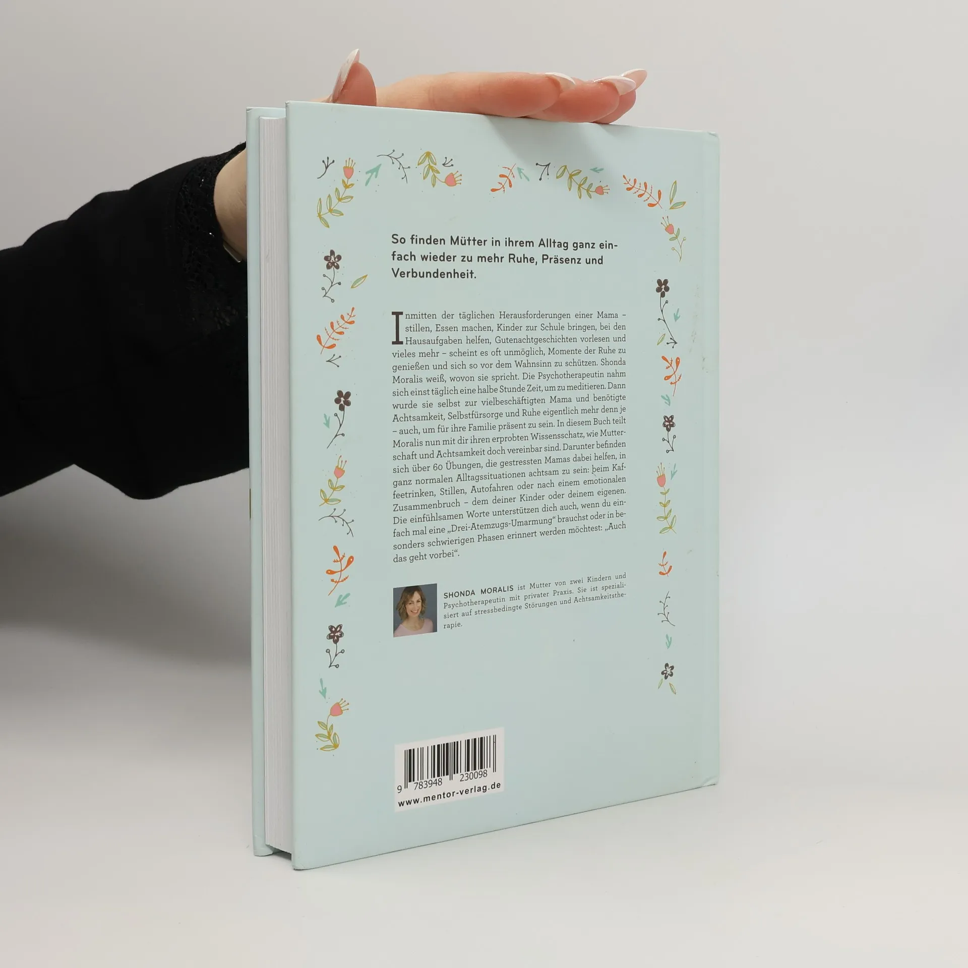 Mit diesem Buch finden Mütter in ihrem Alltag ganz einfach wieder zu mehr Ruhe, Präsenz und Verbundenheit. Inmitten der täglichen Herausforderungen einer Mama – Stillen, Essen machen, Kinder zur Schule bringen, bei den Hausaufgaben helfen, Gutenachtgeschichten vorlesen und vieles mehr – scheint es oft unmöglich, Momente der Ruhe zu genießen und sich so vor dem Wahnsinn zu schützen. Shonda Moralis weiß, wovon sie spricht. Die Psychotherapeutin nahm sich einst täglich eine halbe Stunde Zeit, um zu meditieren. Dann wurde sie selbst zur vielbeschäftigten Mama und benötigte Achtsamkeit, Selbstfürsorge und Ruhe eigentlich mehr denn je – auch, um für ihre Familie präsent zu sein. In diesem Buch teilt Moralis ihren erprobten Wissensschatz, wie Mutterschaft und Achtsamkeit doch vereinbar sind. Darunter befinden sich über 60 Übungen, die Mamas dabei helfen, in ganz normalen Alltagssituationen achtsam zu sein: beim Kaffeetrinken, Stillen, Autofahren oder nach einem emotionalen Zusammenbruch – dem deiner Kinder oder deinem eigenen. Die einfühlsamen Worte unterstützen dich auch, wenn du einfach mal eine „Drei-Atemzugs-Umarmung" brauchst oder in besonders schwierigen Phasen erinnert werden möchtest: „Auch das geht vorbei".