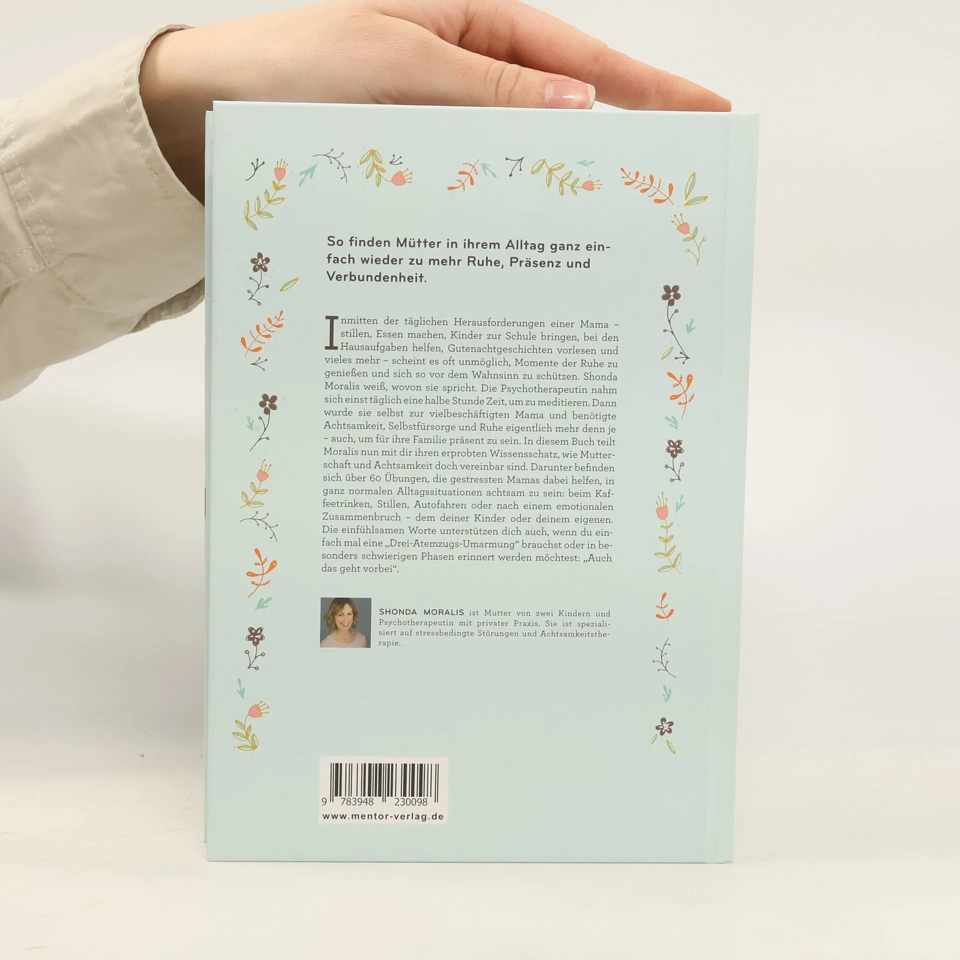 Mit diesem Buch finden Mütter in ihrem Alltag ganz einfach wieder zu mehr Ruhe, Präsenz und Verbundenheit. Inmitten der täglichen Herausforderungen einer Mama – Stillen, Essen machen, Kinder zur Schule bringen, bei den Hausaufgaben helfen, Gutenachtgeschichten vorlesen und vieles mehr – scheint es oft unmöglich, Momente der Ruhe zu genießen und sich so vor dem Wahnsinn zu schützen. Shonda Moralis weiß, wovon sie spricht. Die Psychotherapeutin nahm sich einst täglich eine halbe Stunde Zeit, um zu meditieren. Dann wurde sie selbst zur vielbeschäftigten Mama und benötigte Achtsamkeit, Selbstfürsorge und Ruhe eigentlich mehr denn je – auch, um für ihre Familie präsent zu sein. In diesem Buch teilt Moralis ihren erprobten Wissensschatz, wie Mutterschaft und Achtsamkeit doch vereinbar sind. Darunter befinden sich über 60 Übungen, die Mamas dabei helfen, in ganz normalen Alltagssituationen achtsam zu sein: beim Kaffeetrinken, Stillen, Autofahren oder nach einem emotionalen Zusammenbruch – dem deiner Kinder oder deinem eigenen. Die einfühlsamen Worte unterstützen dich auch, wenn du einfach mal eine „Drei-Atemzugs-Umarmung" brauchst oder in besonders schwierigen Phasen erinnert werden möchtest: „Auch das geht vorbei".