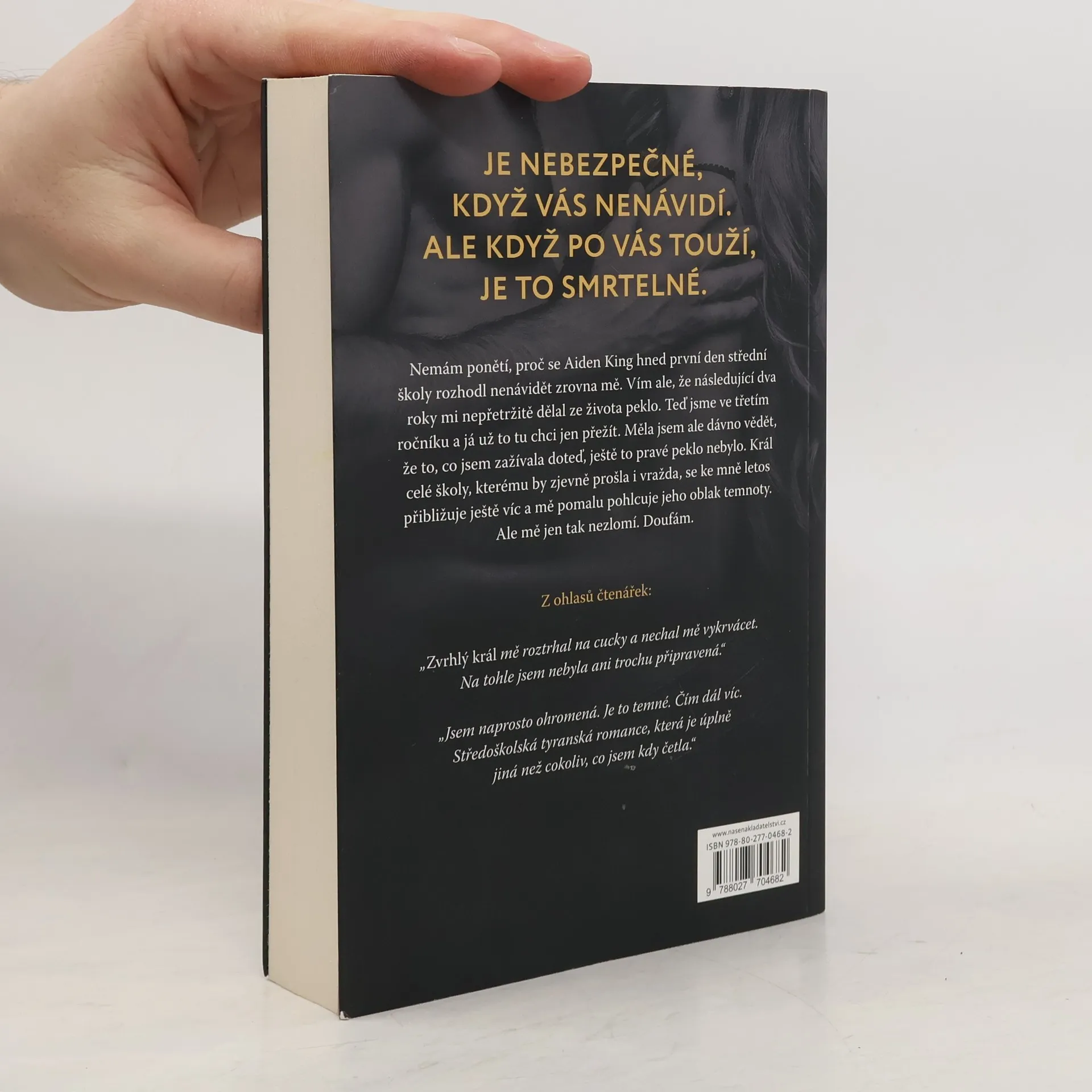 Mám jednoduchý plán. Dokončit školu Royal Elite a dostat se na vysněnou univerzitu. Stačí ale jediný pohled od krále školy a celý můj plán shoří na popel. Jediný pohled a zadusí mě. Jediný pohled a vynese můj rozsudek smrti. Jeho první slova promění můj život v nenapravitelný chaos. „Zničím tě.“ Všechno na Aidenu Kingovi je černé. Černá mysl. Černé srdce. Černá duše. Měla jsem držet jazyk za zuby a přetrpět čas, který mi ještě zbýval. Nemlčela jsem. Udělala jsem neodvolatelnou chybu, provokovala jsem krále na jeho trůně. Ďábla v jeho pekle. A nyní za to zaplatím. Je nebezpečné, když vás Aiden King nenávidí. Ale když po vás touží, je to smrtelné. Zvrhlý král je romance o středoškolském tyranovi pro zralé mladé čtenáře a obsahuje kontroverzní situace, které mohou někomu připadat urážlivé. V Aidenovi žádného hrdinu NENAJDETE. Pokud však toužíte po padouchovi, tak s chutí do toho a vítejte ve světě zvrhlého krále. Tato kniha je součástí trilogie, nejedná se o samostatný román.