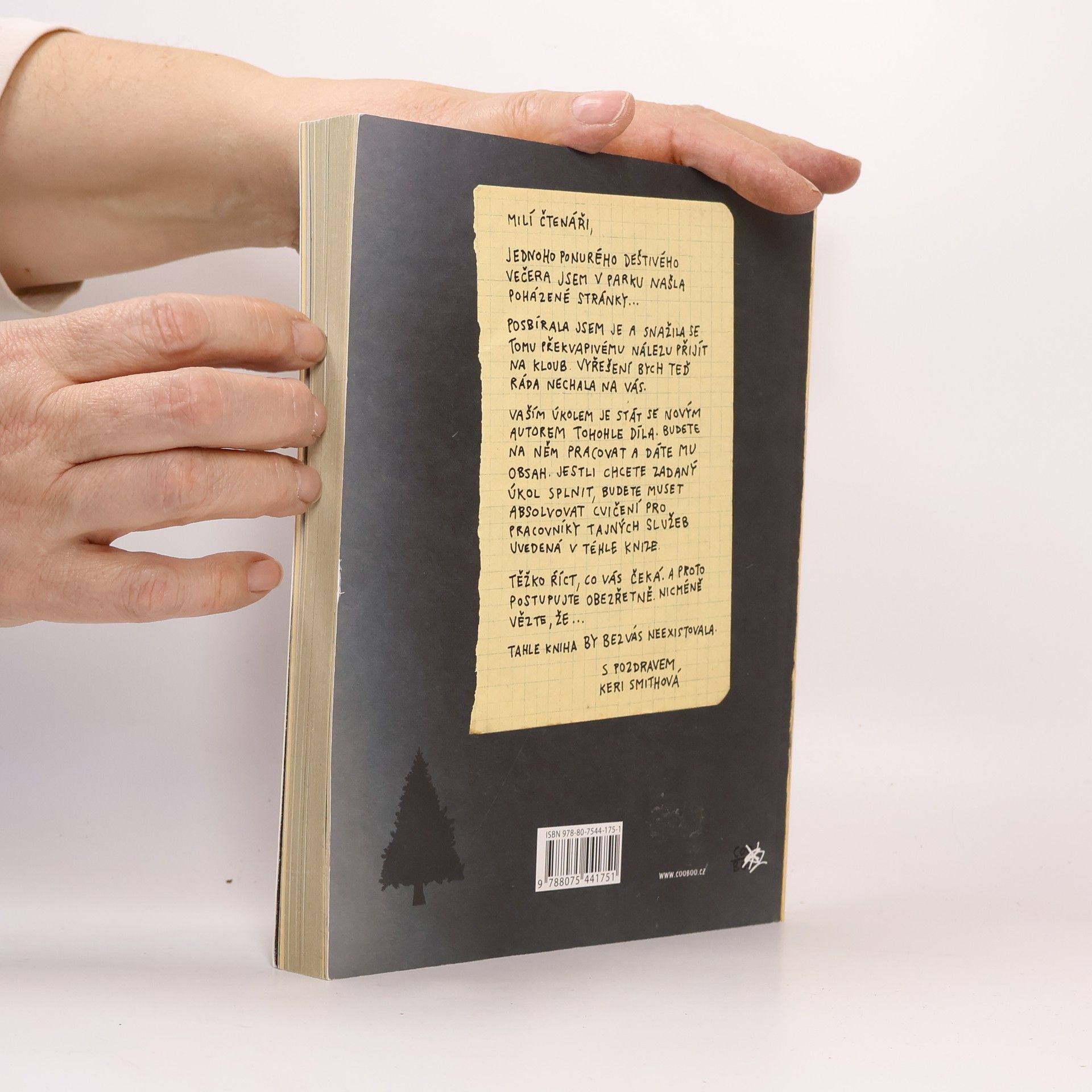 Zbrusu nová knížka od autorky Destrukčního deníku, kterou si můžete sami dodělat a dotáhnout do konce! Milí čtenáři, jedné temné a bouřlivé noci našla Keri Smithová v parku několik podivně rozházených papírů. Posbírala je a seřadila a pokusila se vyřešit záhadu, která na ni nečekaně vyskočila. A teď ten úkol předává vám, svým čtenářům. Vaší úlohou bude stát se novým autorem tohoto díla. Budete pokračovat ve výzkumu a doplníte obsah. Kvůli tomu budete muset podstoupit určitý výcvik tajných služeb, který najdete v tomto svazku. A protože nikdo netuší, co vás čeká, postupujte prosím obezřetně, ale víte jak… bez vás tahle kniha neexistuje.