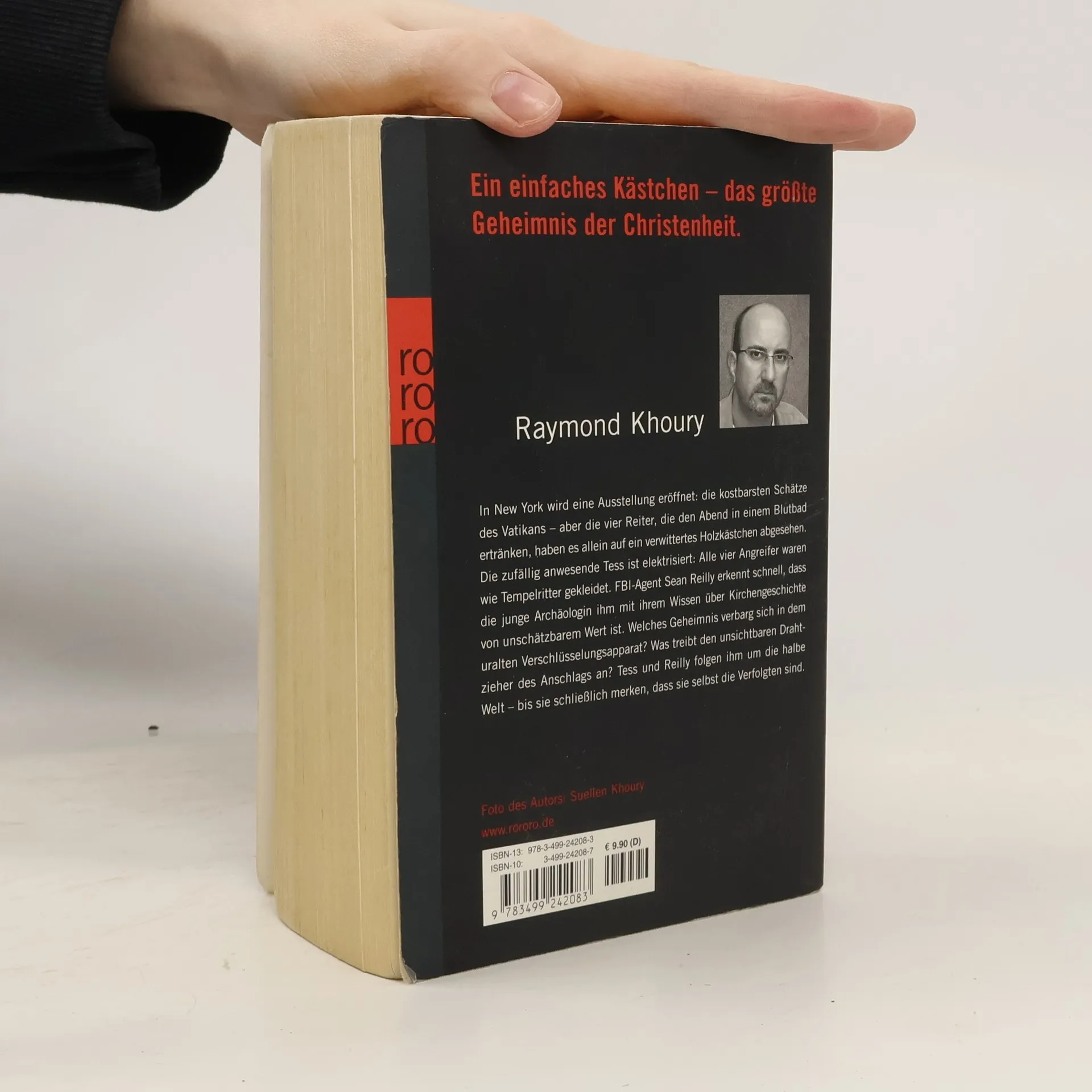 Ein unscheinbares Kästchen - das größte Geheimnis der Christenheit. In New York wird eine Ausstellung eröffnet: die kostbarsten Schätze des Vatikans – aber die vier Reiter, die den Abend in einem Blutbad ertränken, haben es allein auf ein verwittertes Holzkästchen abgesehen. Die zufällig anwesende Tess Chaykin ist elektrisiert: Die Angreifer waren wie mittelalterliche Tempelritter gekleidet. FBI-Agent Sean Reilly merkt schnell, dass die junge Archäologin ihm mit ihrem Wissen von unschätzbarem Wert ist. Welches Geheimnis verbarg sich in dem uralten Verschlüsselungsapparat? Was treibt den unsichtbaren Drahtzieher des Anschlags an? Tess und Reilly folgen ihm um die halbe Welt – am Ende erkennen sie, dass sie selbst die Verfolgten sind. DER WELT-BESTSELLER: EINE MILLION VERKAUFTE EXEMPLARE IN DEUTSCHLAND