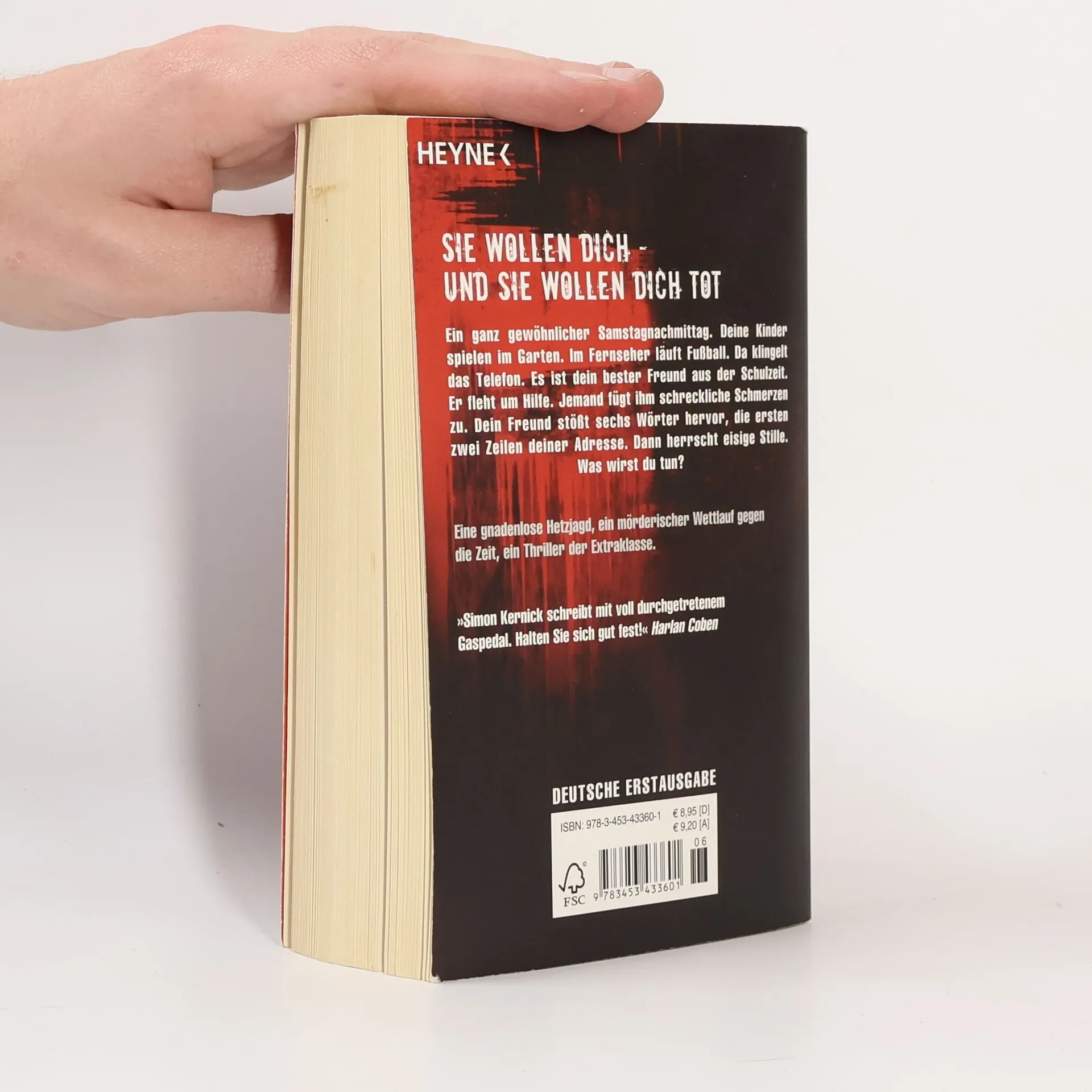 Sie wollen ihn - und sie wollen ihn tot Ein ganz gewöhnlicher Samstagnachmittag. Deine Kinder spielen im Garten. Im Fernseher läuft Fußball. Da klingelt das Telefon. Es ist dein bester Freund aus der Schulzeit. Er fleht um Hilfe. Jemand fügt ihm schreckliche Schmerzen zu. Dein Freund stößt sechs Wörter hervor, die ersten zwei Zeilen deiner Adresse. Dann herrscht Stille. Was wirst du tun?Eine gnadenlose Hetzjagd, ein mörderischer Wettlauf gegen die Zeit, ein atemberaubender Thriller der Extraklasse.