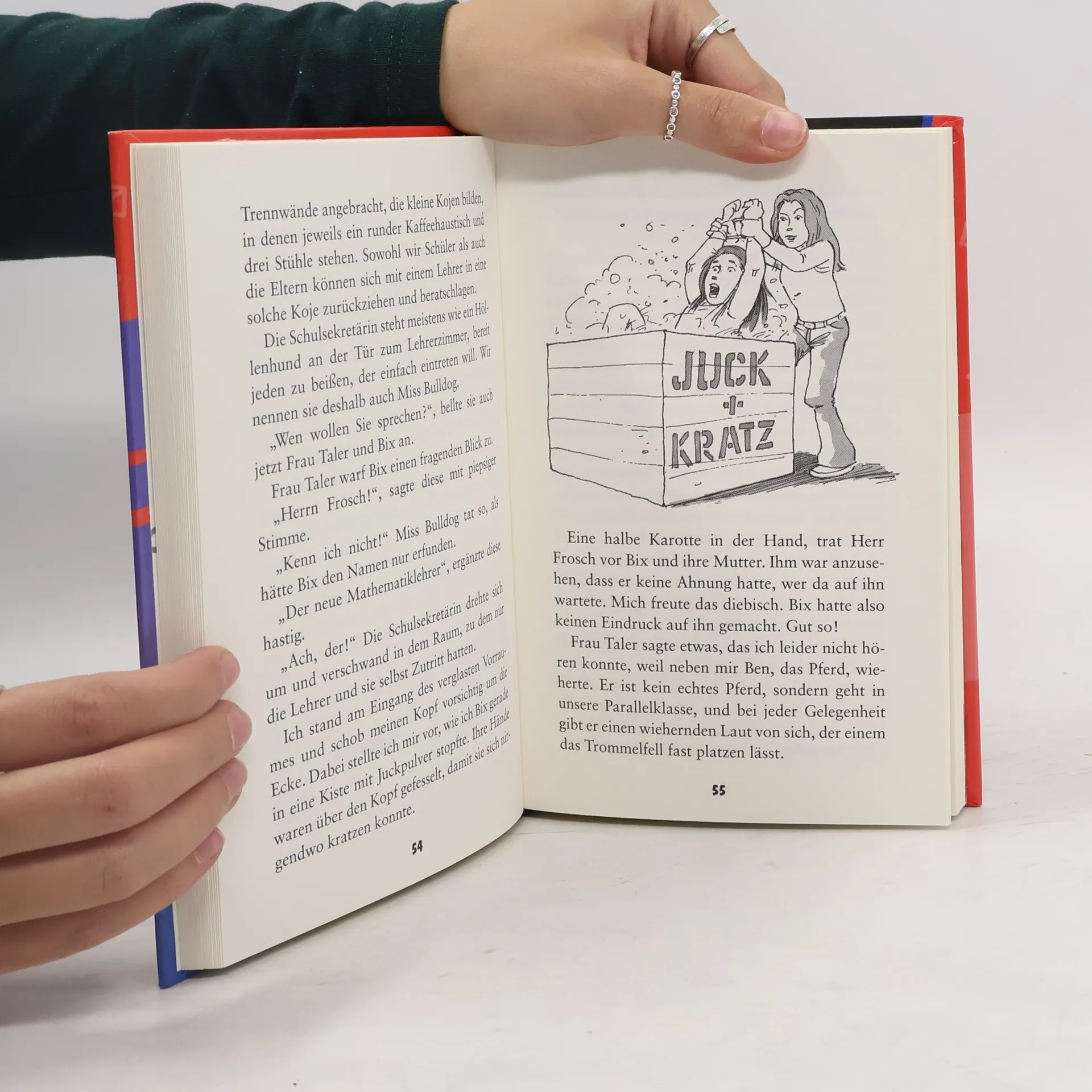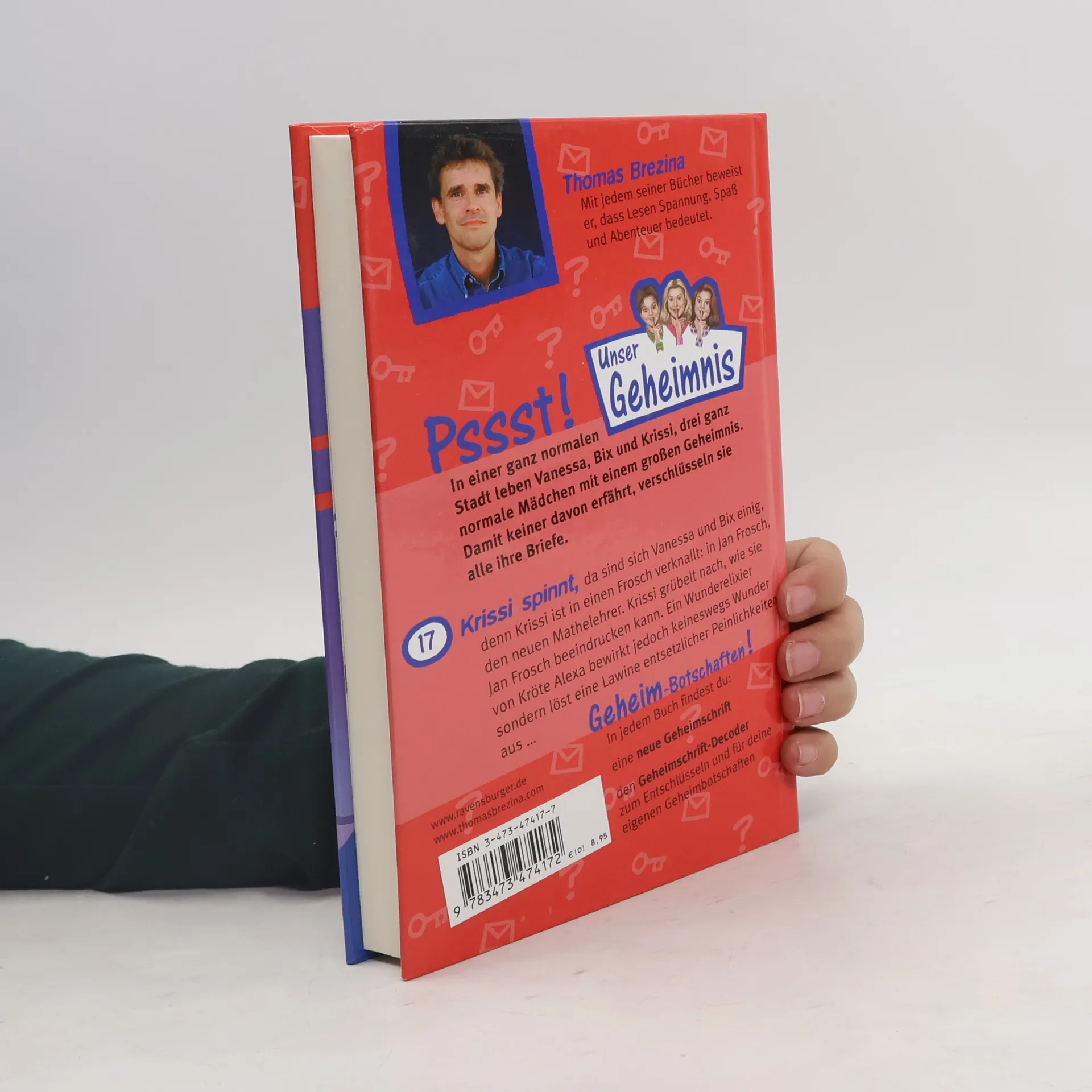 Auch im 17. Band der Serie "Unser Geheimnis" gelingt es Vanessa, Bix und Krissi, ihr Wissen um die Zauberkröte Alexa geheim zu halten (vgl. Band 1416, BA 2/04). Allerdings bleiben nicht zum 1. Mal die magischen Elemente gegenüber den realistischen Alltagsproblemen der Mädchen sehr im Hintergrund. Ihre Freundschaft ist bedroht: Krissi hat nur noch Augen für den attraktiven Mathelehrer Herrn Frosch und wittert selbst bei Bix und Vanessa überall Verrat. Um in Mathe aufzutrumpfen, besorgt sie sich bei Alexa einen Flaschengeist. Zu ihrem Entsetzen kann dieser zwar Mathe, aber ausgerechnet als sie an der Tafel steht, beginnt er lautstark zu rülpsen und furzen. Doch selbst diese Schmach lässt sich mit wirklichen Freundinnen überleben und schweißt die Gemeinschaft der 3 nur fester zusammen. So überwindet Krissi ihre unerwiderte Liebe, zumal sich ein jüngerer, sympathischer Ersatz andeutet. Kurzweiliges Lesefutter mit den üblichen Geheimbotschaften samt Decoder auf Zetteln als Zugabe. Überall zur Fortsetzung möglich.. Die Freundschaft der Mädchen ist bedroht: Krissi hat nur noch Augen für den attraktiven Mathelehrer Herrn Frosch und wittert selbst bei Bix und Vanessa überall Verrat. Um in Mathe aufzutrumpfen, besorgt sie sich bei Alexa einen Flaschengeist. Ab 9.