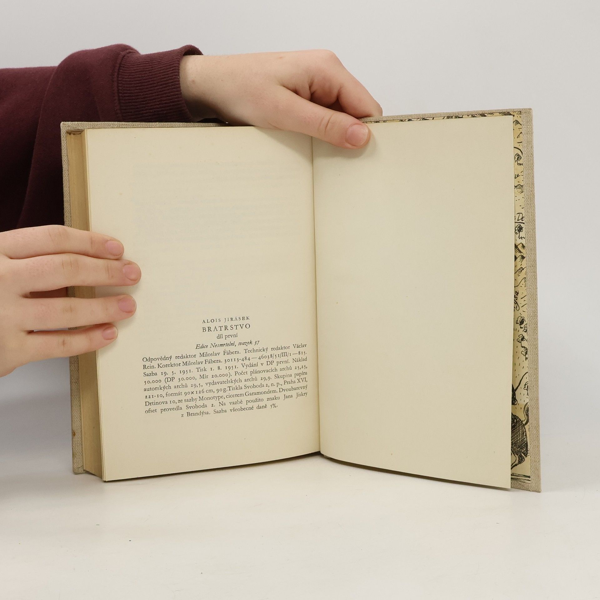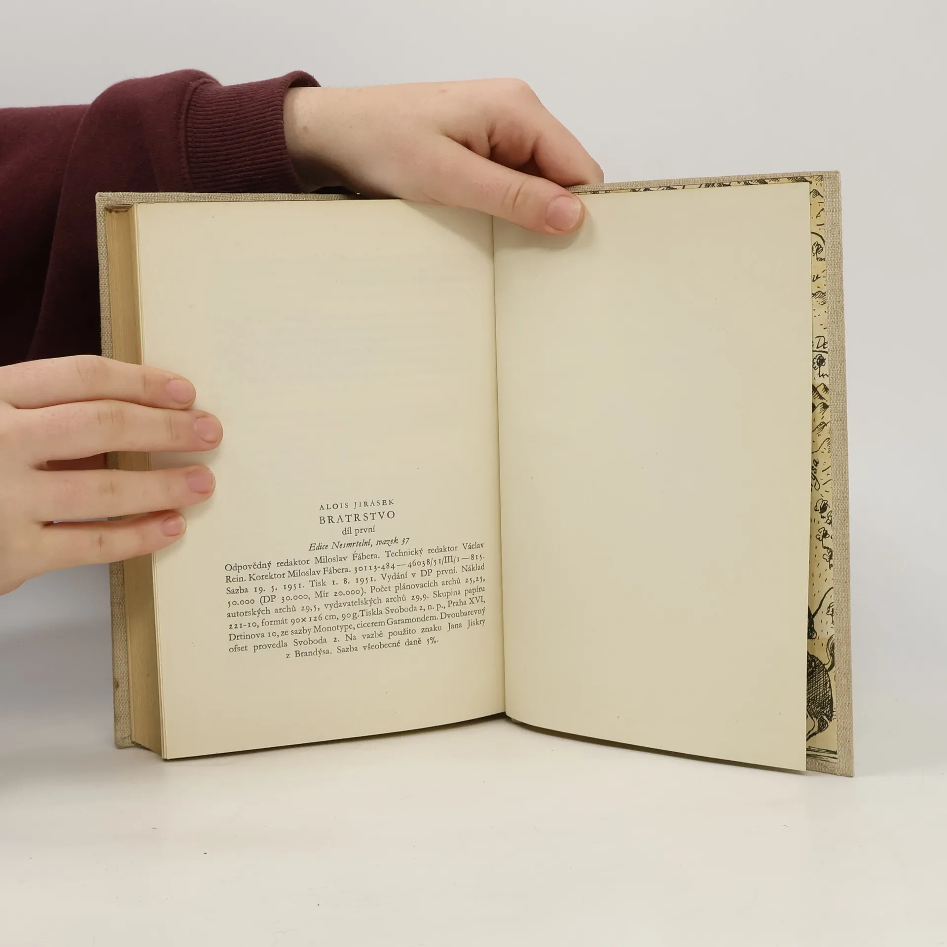 První vydání v tomto nakladatelství. *** Po trilogii "Mezi proudy", líčící vznik a počátky husitství, a po "Proti všem", podávajících vrchol síly a slávy husitství, vzniká "Bratrstvo" jako třetí část Jiráskovy velké husitské epopeje. Ve 3 "rapsodiích" jsou vylíčeny osudy bratrskýchvojsk na Slovensku (1450-1467) pod vedením Jana Jiskry z Brandýsa. 1. díl, zahrnující rok 1450-1451, je věnován nejslavnější době bratříků. Líčí vítěznou bitvu u Lučence, v níž české roty porazily daleko početnější vojsko Hunyadyho, a vpád bratříků vedených Janem Poberou z Lomu až k Pešti, kam nepronikl ani Žižka na svém tažení r. 1423. Bratříci opanovali celé Slovensko a stali se tak mocí, s níž musil počítat i nepřítel. Na ovládnutém území vybudovali zcela nový, jakoby státní útvar, jenž vedle moci krále Ladislava a moci Hunyadovců znamenal třetí samostatnou sílu na území tehdejších Uher. Jirásek líčí, jak husitský demokratismus posílil národnostní uvědomění a sebevědomí zejména slovenského zemanstva, ale i sloven. lidu. Tak je Bratrstvo kapitolou z dějin Slovenska, nově pojatou pod zorným úhlem osvobozovacího významu husitské revoluce, sociálního i národnostního.