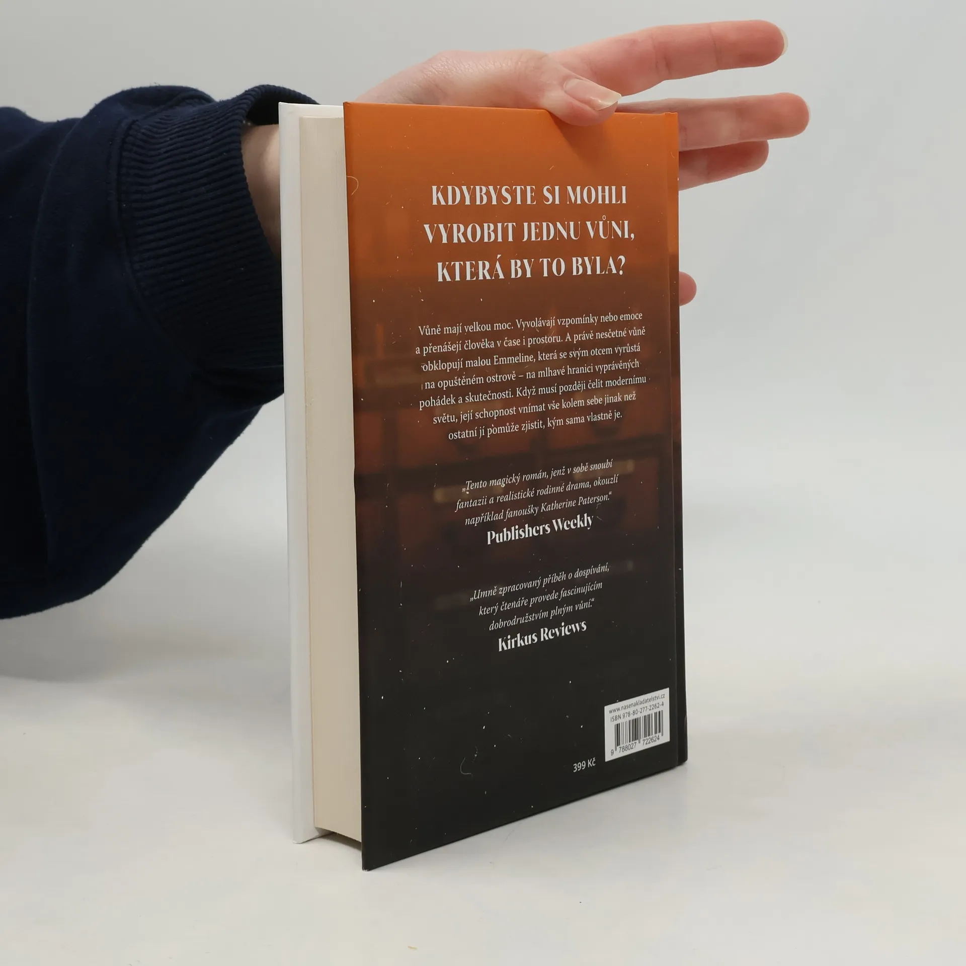 Tajuplný příběh, ve kterém hlavní hrdinka vnímá okolní svět prostřednictvím vůní, snaží se mu porozumět a najít si v něm své místo. Emmeline vyrůstá na osamělém ostrůvku poblíž kanadského pobřeží jen se svým otcem. Tatínek Emmeline vypráví pohádky a učí ji poznávat svět prostřednictvím svých smyslů. Nikdy jí ale nevysvětlí, k čemu vlastně slouží lahvičky uložené do zásuvek, které lemují stěny jejich chaty a ukrývají v sobě kousky voňavého papíru. Čím je však Emmeline starší, tím víc roste její zvědavost, až ji nakonec zavede na cestu, z níž není návratu. Emmeline je nucena ostrov opustit a začlenit se do života v moderním světě, kde pro pohádky ani kouzelné vůně není místo. Zato se tu setká s láskou, zradou, ctižádostí i touhou po pomstě. Nakladatelská anotace. Kráceno.