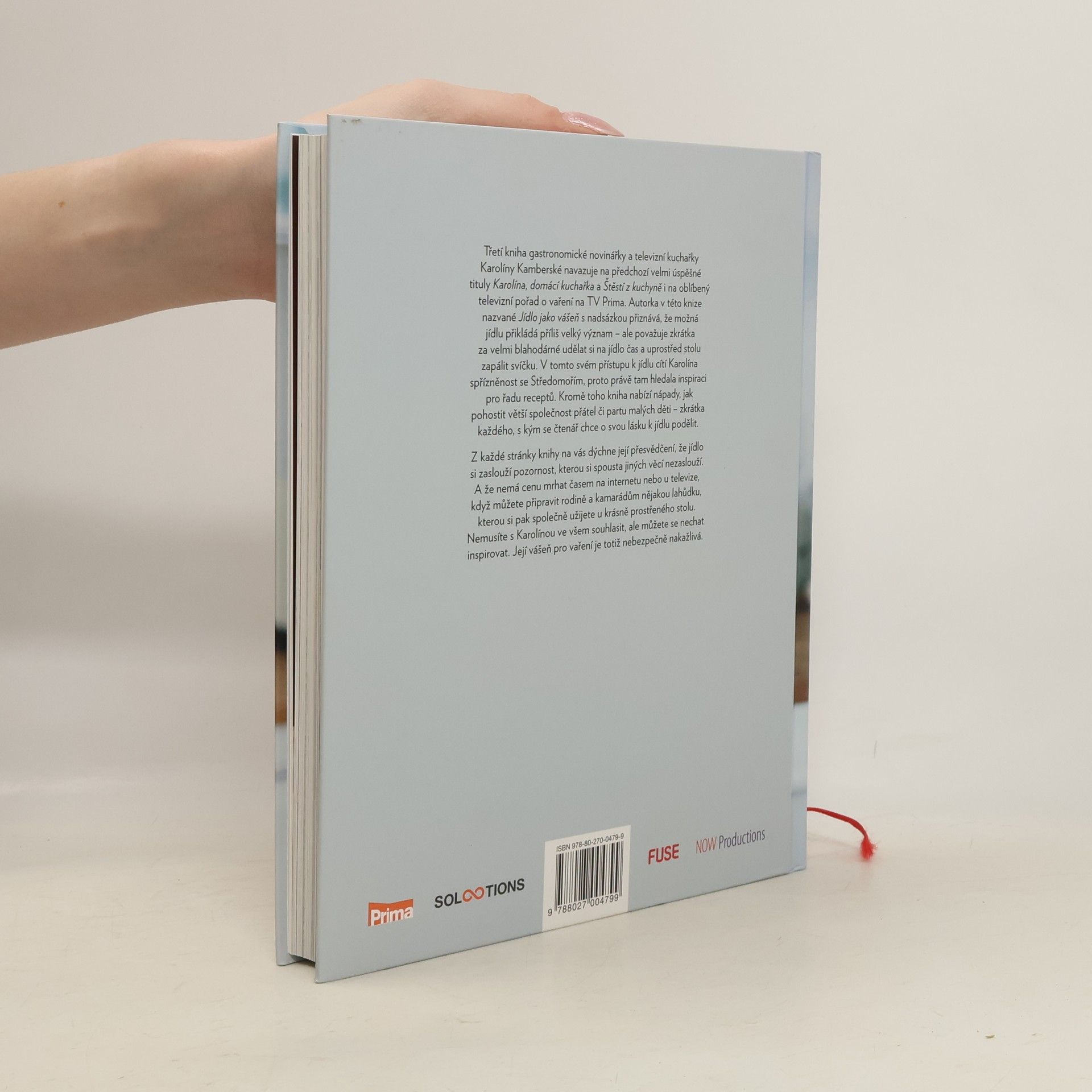 Třetí kniha gastronomické novinářky a televizní kuchařky Karolíny Kamberské navazuje na předchozí velmi úspěšné tituly Karolína, domácí kuchařka a Štěstí z kuchyně i na oblíbený televizní pořad o vaření na TV Prima. Autorka v této knize nazvané Jídlo jako vášeň s nadsázkou přiznává, že možná jídlu přikládá moc velký význam – ale považuje zkrátka za velmi blahodárné udělat si na jídlo čas a uprostřed stolu zapálit svíčku. V tomto svém přístupu k jídlu cítí Karolína spřízněnost se Středomořím, proto právě tam hledala inspiraci pro řadu receptů. Kromě toho kniha nabízí nápady, jak pohostit větší společnost přátel či partu malých děti - zkrátka každého, s kým se čtenář chce o svou lásku k jídlu podělit. Na každé stránce knihy na vás dýchne její přesvědčení, že jídlo si zaslouží pozornost, kterou si spousta jiných věcí nezaslouží. A že nemá cenu mrhat časem na internetu nebo u televize, když můžete připravit rodině a kamarádům nějakou lahůdku, kterou si pak společně užijete u krásně prostřeného stolu. Nemusíte s Karolínou ve všem souhlasit, ale můžete se nechat inspirovat. Její vášeň pro vaření je totiž nebezpečně nakažlivá.