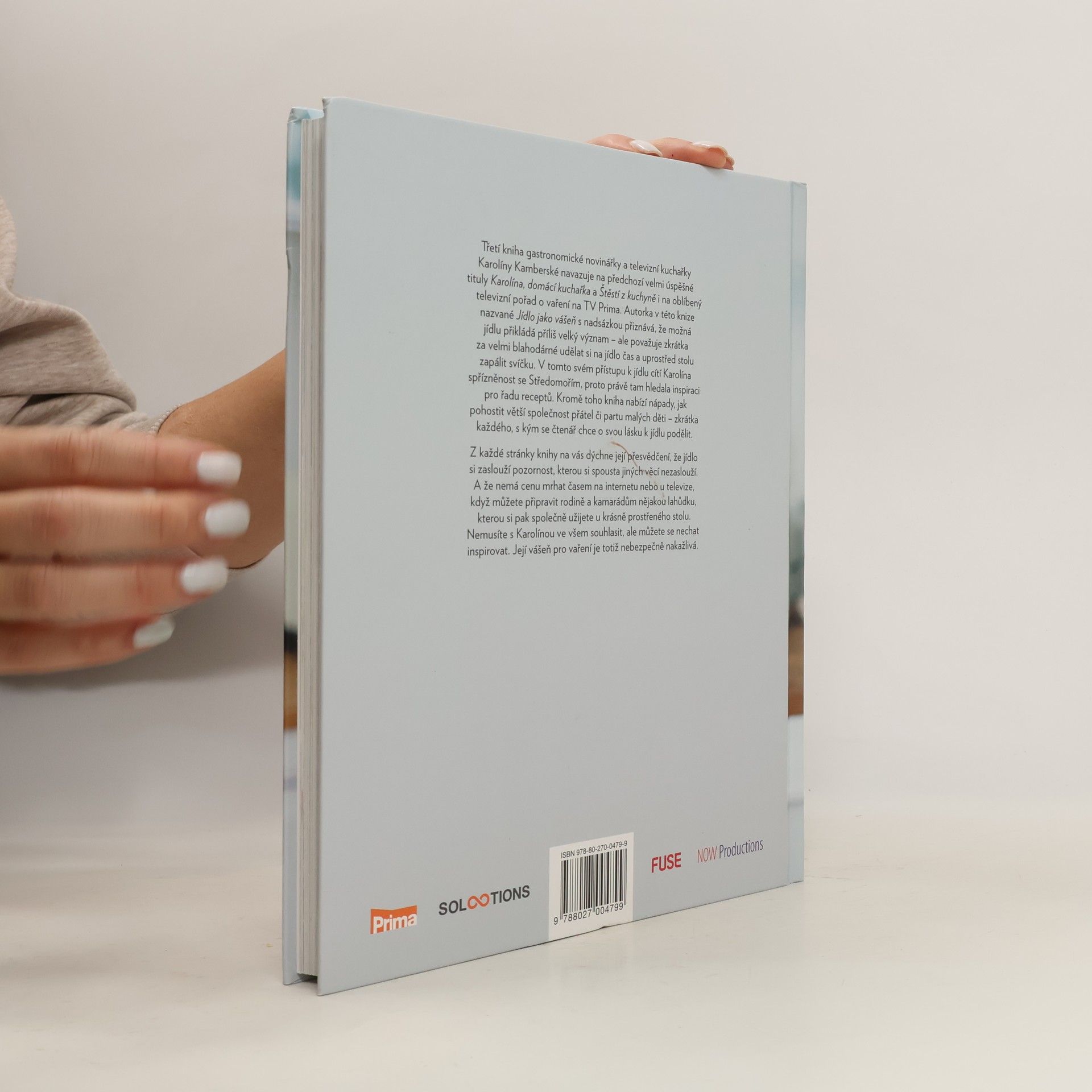 Třetí kniha gastronomické novinářky a televizní kuchařky Karolíny Kamberské navazuje na předchozí velmi úspěšné tituly Karolína, domácí kuchařka a Štěstí z kuchyně i na oblíbený televizní pořad o vaření na TV Prima. Autorka v této knize nazvané Jídlo jako vášeň s nadsázkou přiznává, že možná jídlu přikládá moc velký význam – ale považuje zkrátka za velmi blahodárné udělat si na jídlo čas a uprostřed stolu zapálit svíčku. V tomto svém přístupu k jídlu cítí Karolína spřízněnost se Středomořím, proto právě tam hledala inspiraci pro řadu receptů. Kromě toho kniha nabízí nápady, jak pohostit větší společnost přátel či partu malých děti - zkrátka každého, s kým se čtenář chce o svou lásku k jídlu podělit. Na každé stránce knihy na vás dýchne její přesvědčení, že jídlo si zaslouží pozornost, kterou si spousta jiných věcí nezaslouží. A že nemá cenu mrhat časem na internetu nebo u televize, když můžete připravit rodině a kamarádům nějakou lahůdku, kterou si pak společně užijete u krásně prostřeného stolu. Nemusíte s Karolínou ve všem souhlasit, ale můžete se nechat inspirovat. Její vášeň pro vaření je totiž nebezpečně nakažlivá.