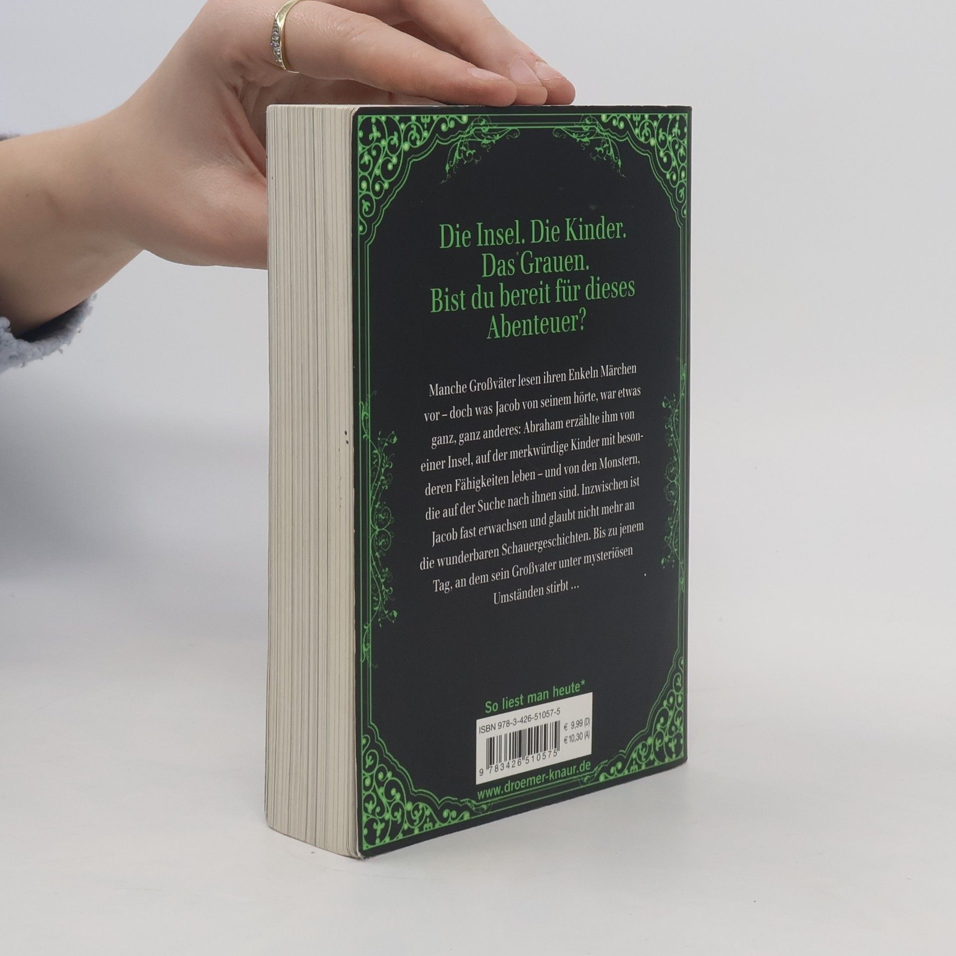 Eine geheimnisvolle Insel, ein verlassenes Waisenhaus und eine Sammlung merkwürdiger Fotografien warten darauf, entdeckt zu werden. In diesem unvergesslichen Roman, der Fiktion mit Vintage-Fotografien verbindet, erlebt der sechzehnjährige Jacob eine außergewöhnliche Reise. Anders als die Märchen, die Großeltern ihren Enkeln erzählen, berichtet sein Opa Abraham von einer Insel, auf der abenteuerlustige Kinder mit besonderen Fähigkeiten leben und von Monstern verfolgt werden. Nach dem mysteriösen Tod seines Großvaters begibt sich Jacob auf die Suche nach der Wahrheit und erreicht eine abgelegene Insel vor der Küste von Wales. Dort entdeckt er eine Welt, in der die Zeit stillsteht und er ungewöhnliche Freundschaften schließt. Doch die Ungeheuer, von denen sein Opa sprach, sind real und verfolgen ihn. Dies ist der erste Band einer erfolgreichen Fantasy-Reihe, die Jacob Portman und die besonderen Kinder begleitet. Die Reihe umfasst insgesamt sechs Bände, die die fantastischen Abenteuer und Geheimnisse dieser einzigartigen Welt weiter erkunden.