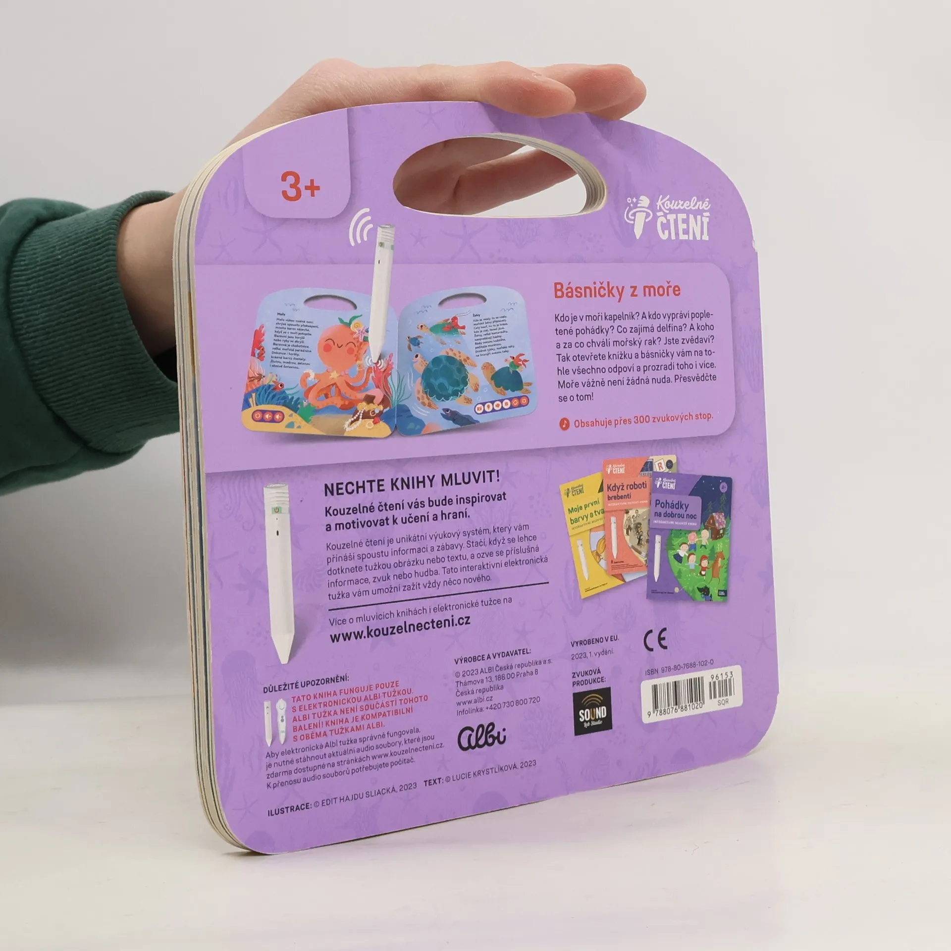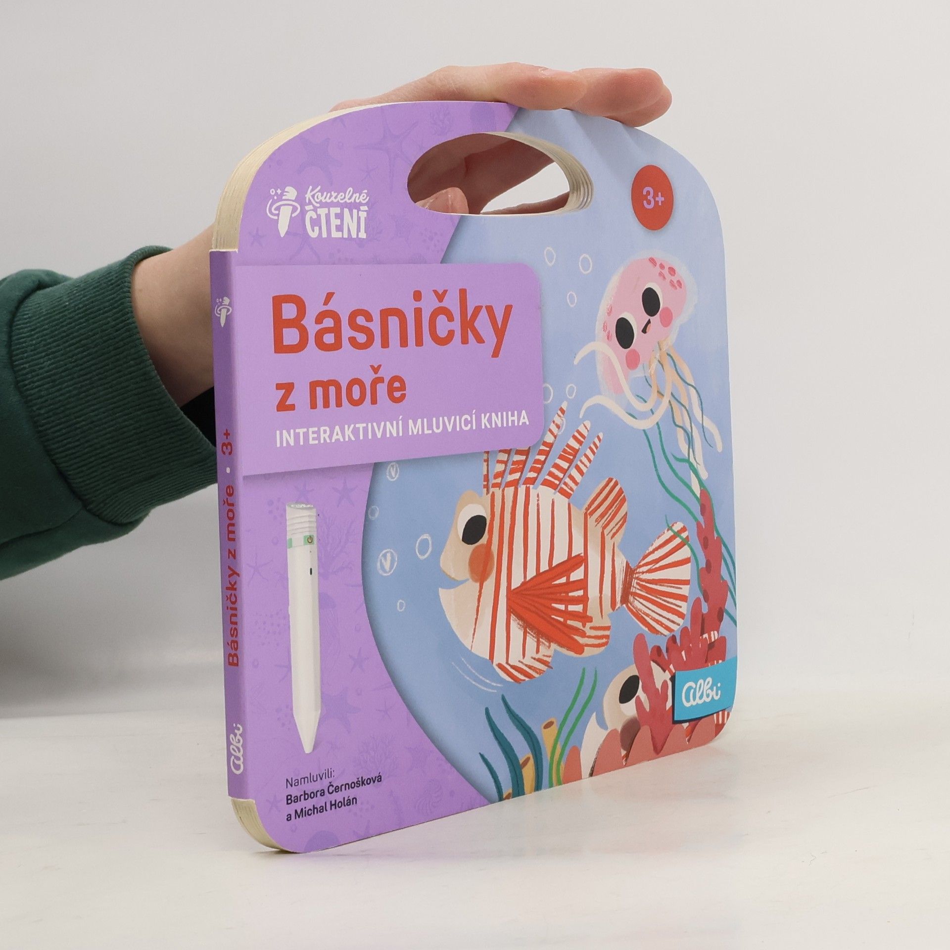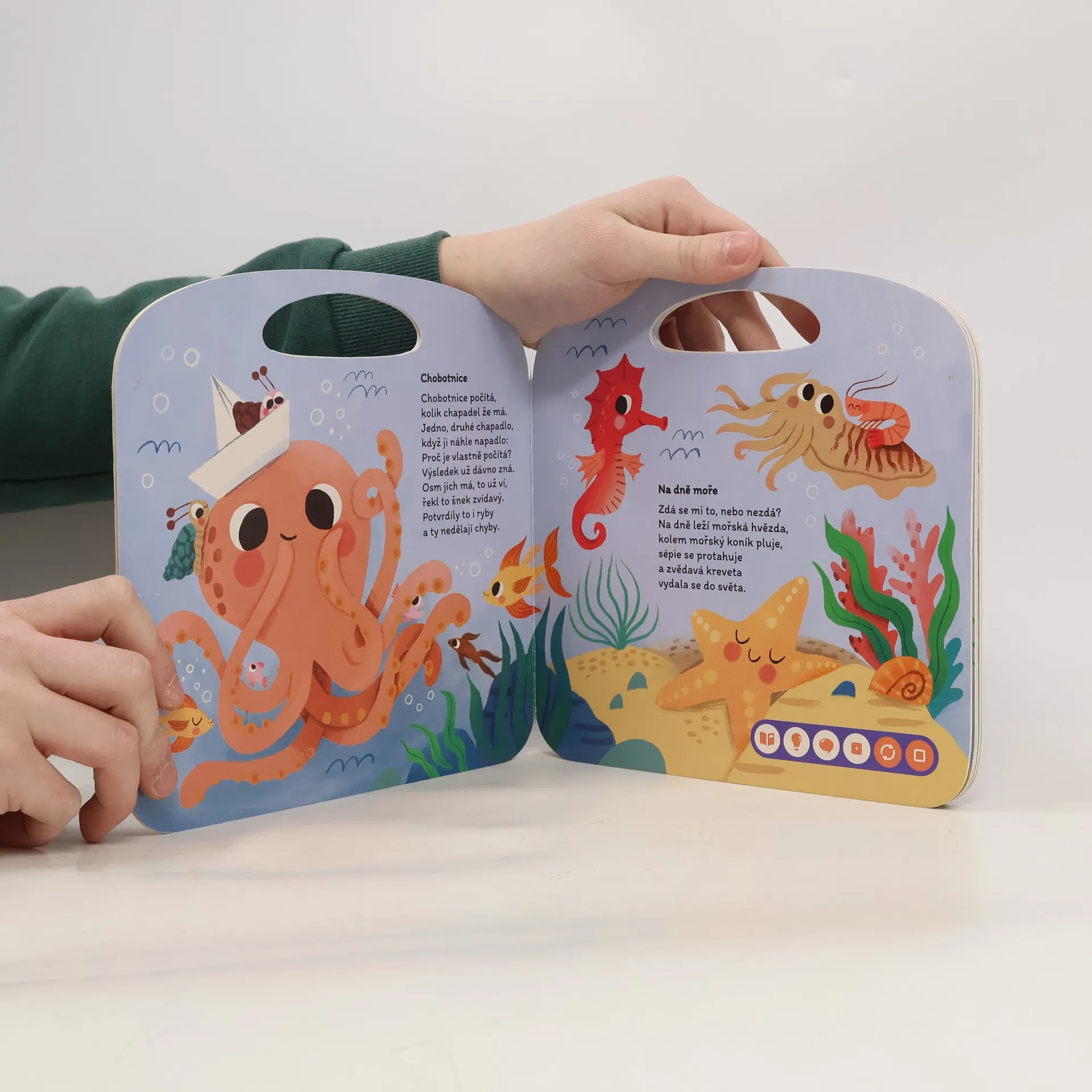Útlá knížka říkanek o zvířatech z mořských hlubin, pro použití s elektronickou tužkou.