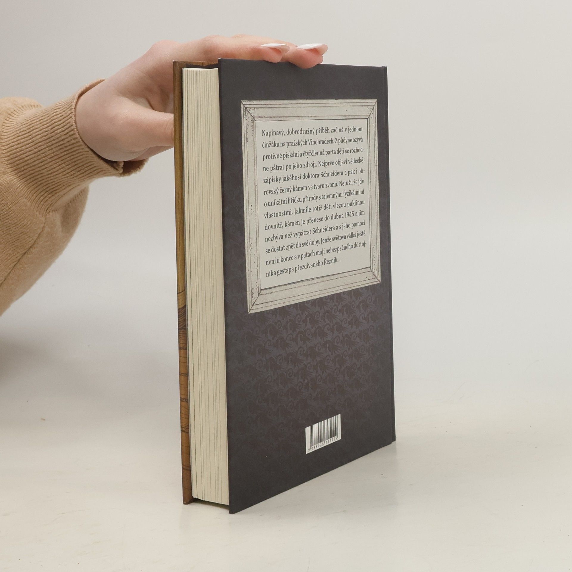 Příběh pro děti, v němž se tři hlavní hrdinové přesunou v čase do roku 1945, do doby druhé světové války, kdy se stávají cílem maniakálního důstojníka gestapa. Dokážou se dostat zpátky do své doby? Napínavý, dobrodružný příběh začíná v jednom činžáku na pražských Vinohradech. Čtveřice kamarádů slyší odněkud shora podivné pískání a vydá se po zvuku. Na půdě objeví vědecké zápisky jakéhosi doktora Schneidera a hlavně zdroj pískání: obrovský černý kámen ve tvaru zvonu. V tělese je puklina dost velká na to, aby se dovnitř mohl protáhnout člověk. A přesně to tři z dětí udělají, jen bázlivý Eda zůstane venku. Vtom se trojice uvnitř stane nedobrovolnými účastníky neobvyklého fyzikálního jevu. Zvon je přesunul do dubna 1945 a jim nezbývá než vypátrat doktora Schneidera a s jeho pomocí se dostat zpět do své doby. Snadné to nebude, světová válka ještě není u konce, navíc jim je v patách maniakální důstojník gestapa přezdívaný Řezník... Nakladatelská anotace.