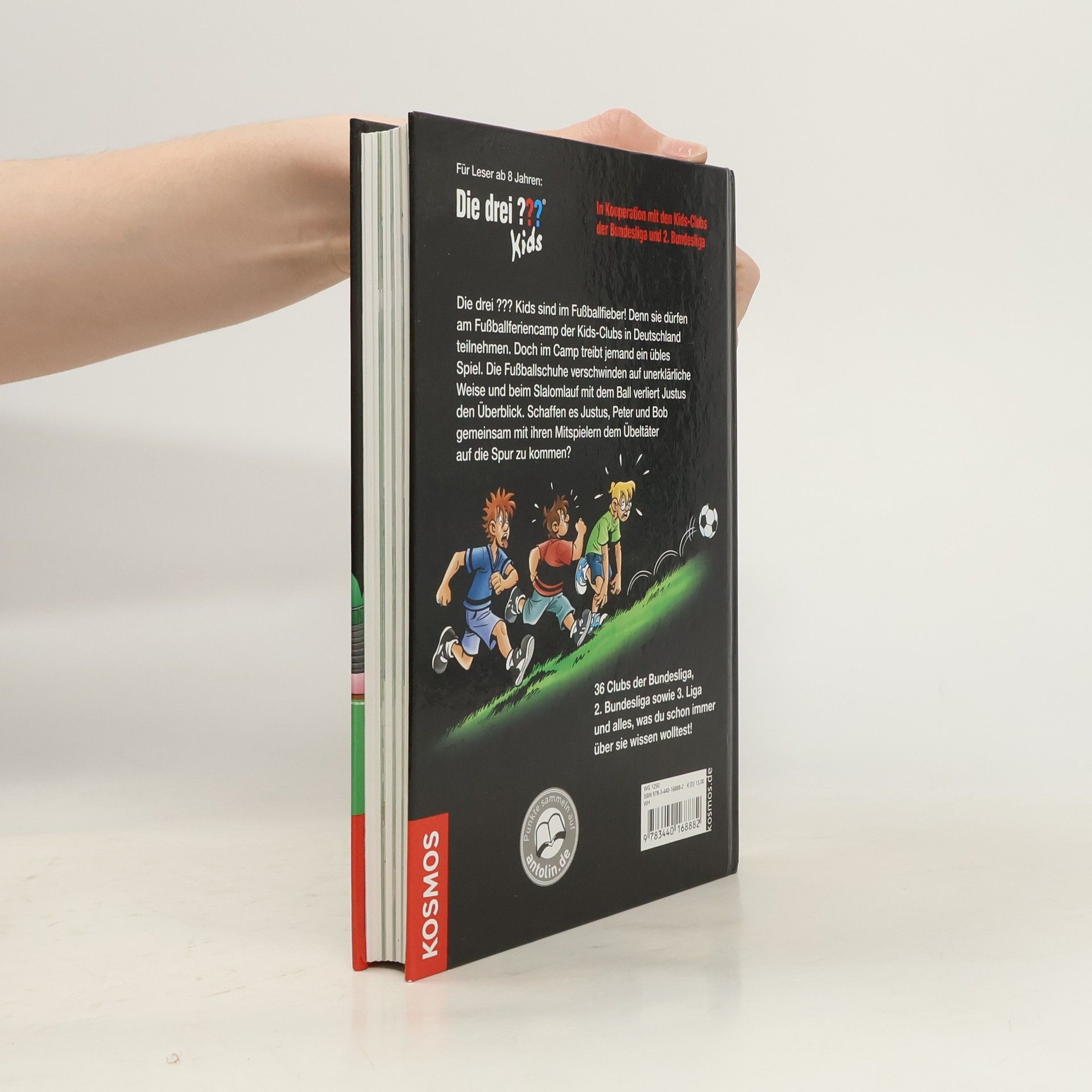 Justus, Peter und Bob sind beste Freunde und Detektive! Zusammen haben die drei ??? schon viele knifflige Fälle gelöst. Endlich Ferien – und was für welche! Justus, Peter und Bob nehmen an einem Fußballcamp der Bundesliga-Kids-Clubs teil. Doch kaum sind die Zelte aufgebaut, werden die drei Freunde beschuldigt, falsch zu spielen. Wer steckt dahinter? Der rasante Fall führt die Detektive durch 36 Clubs der 1., 2. und 3. Bundesliga. Hier findet bestimmt jeder Fan seinen Lieblingsverein!