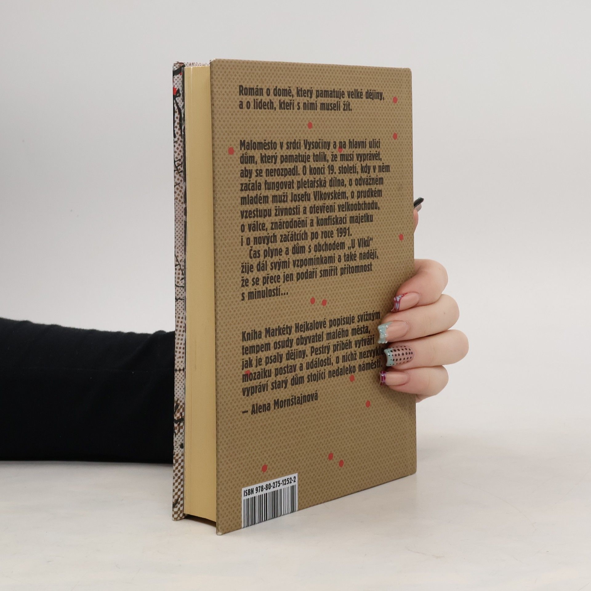 Román o pomíjivosti času a neměnnosti lidských životů.Starý dům na hlavní ulici kousek pod náměstím v malém městě na Vysočině jako by měl svou vlastní paměť. Osudy jeho obyvatel se do jeho stěn zapisovaly od roku 1695 a dům má co vyprávět. A tak vypráví. Především o konci devatenáctého století, kdy v něm začala fungovat pletařská dílna, z níž později vznikla velká a dodnes fungující továrna. O odvážném mladém muži Josefu Vlkovském, který si zde roku 1925 otevřel obchod s potravinami. O prudkém vzestupu živnosti, otevření velkoobchodu, ale i o válečných omezeních, rodinné tragédii, znárodnění a konfiskaci majetku. Dům vypráví svůj vlastní příběh, prolínající se s tragickým osudem ředitele textilní továrny Knopa, a pokračuje přes nové začátky a změny v devadesátých letech až do současnosti. Čas plyne, dům s obchodem „U Vlků“ zůstává. Skrze studentku Anežku si pak současnost podá na usmířenou ruku s minulostí. Markéta Hejkalová na pozadí vyprávění o historii jednoho domu postupně odkrývá silné osudy obyvatel kraje uprostřed naší země.
