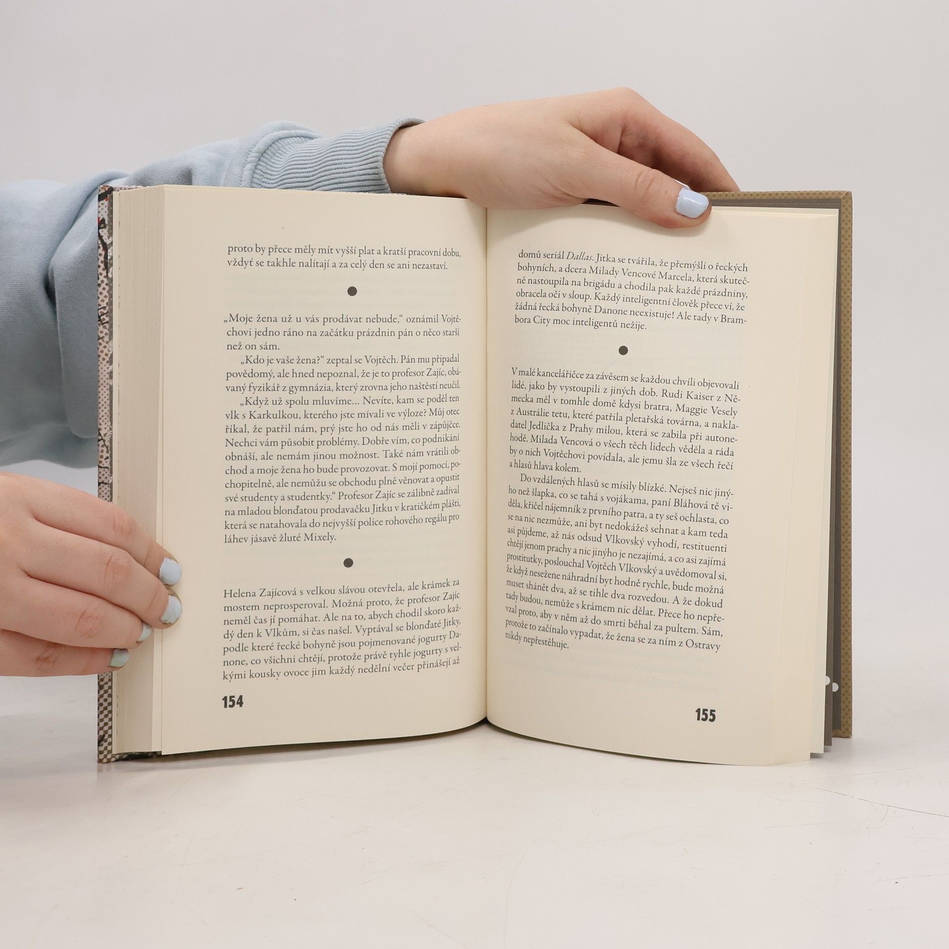 Román o pomíjivosti času a neměnnosti lidských životů.Starý dům na hlavní ulici kousek pod náměstím v malém městě na Vysočině jako by měl svou vlastní paměť. Osudy jeho obyvatel se do jeho stěn zapisovaly od roku 1695 a dům má co vyprávět. A tak vypráví. Především o konci devatenáctého století, kdy v něm začala fungovat pletařská dílna, z níž později vznikla velká a dodnes fungující továrna. O odvážném mladém muži Josefu Vlkovském, který si zde roku 1925 otevřel obchod s potravinami. O prudkém vzestupu živnosti, otevření velkoobchodu, ale i o válečných omezeních, rodinné tragédii, znárodnění a konfiskaci majetku. Dům vypráví svůj vlastní příběh, prolínající se s tragickým osudem ředitele textilní továrny Knopa, a pokračuje přes nové začátky a změny v devadesátých letech až do současnosti. Čas plyne, dům s obchodem „U Vlků“ zůstává. Skrze studentku Anežku si pak současnost podá na usmířenou ruku s minulostí. Markéta Hejkalová na pozadí vyprávění o historii jednoho domu postupně odkrývá silné osudy obyvatel kraje uprostřed naší země.