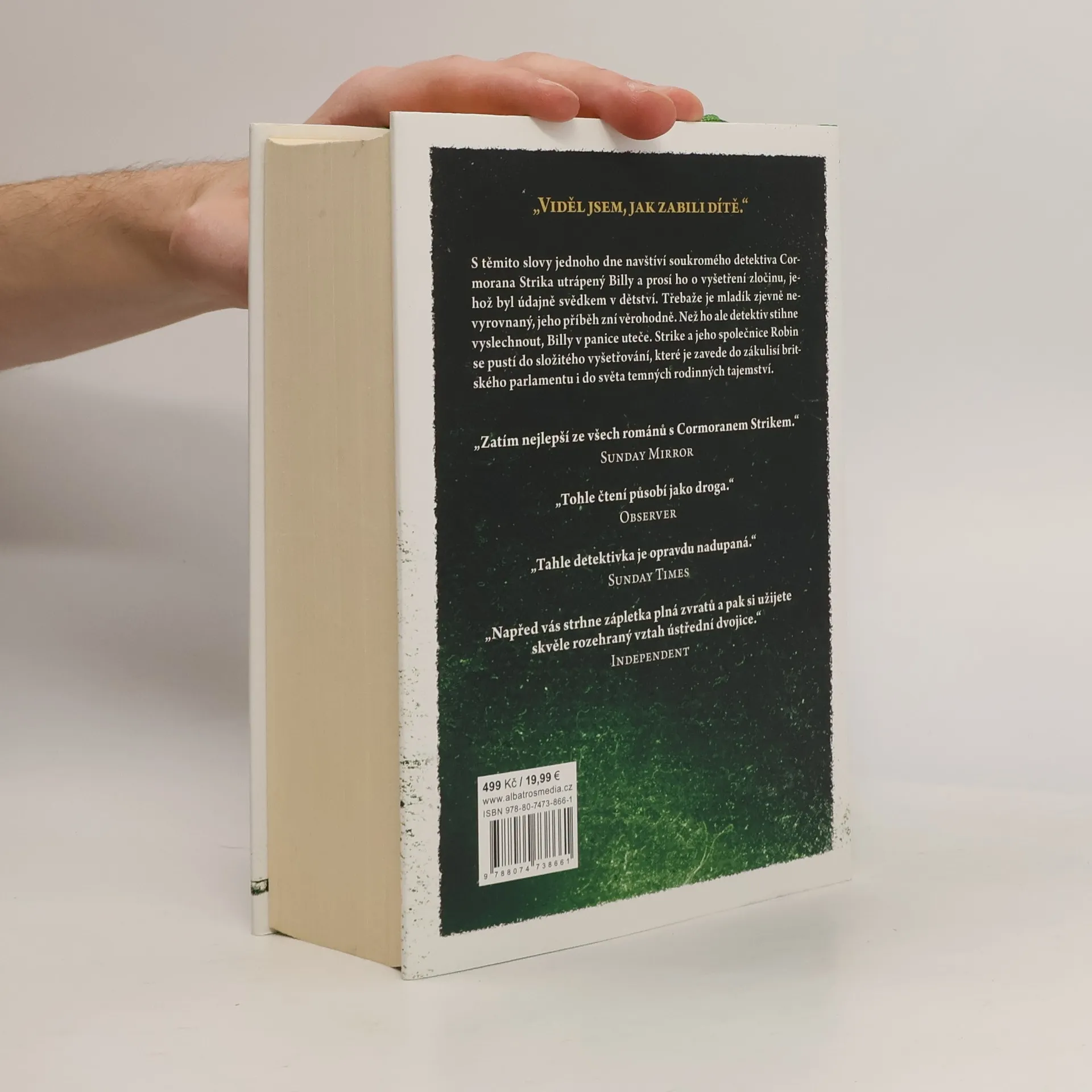 Čtvrtý případ Cormorana Strika a Robin Ellacottové „Viděl jsem, jak zabili dítě.“ S těmito slovy jednoho dne navštíví utrápený mladý muž soukromého detektiva Cormorana Strika a prosí ho o vyšetření zločinu, jehož byl údajně svědkem v dětství. Třebaže je mladík zjevně nevyrovnaný, jeho příběh zní věrohodně. Než ho ale detektiv stihne vyslechnout, muž v panice uteče. Strike a jeho společnice Robin se pustí do složitého vyšetřování, které je zavede do zákulisí britského parlamentu i do světa temných rodinných tajemství.
