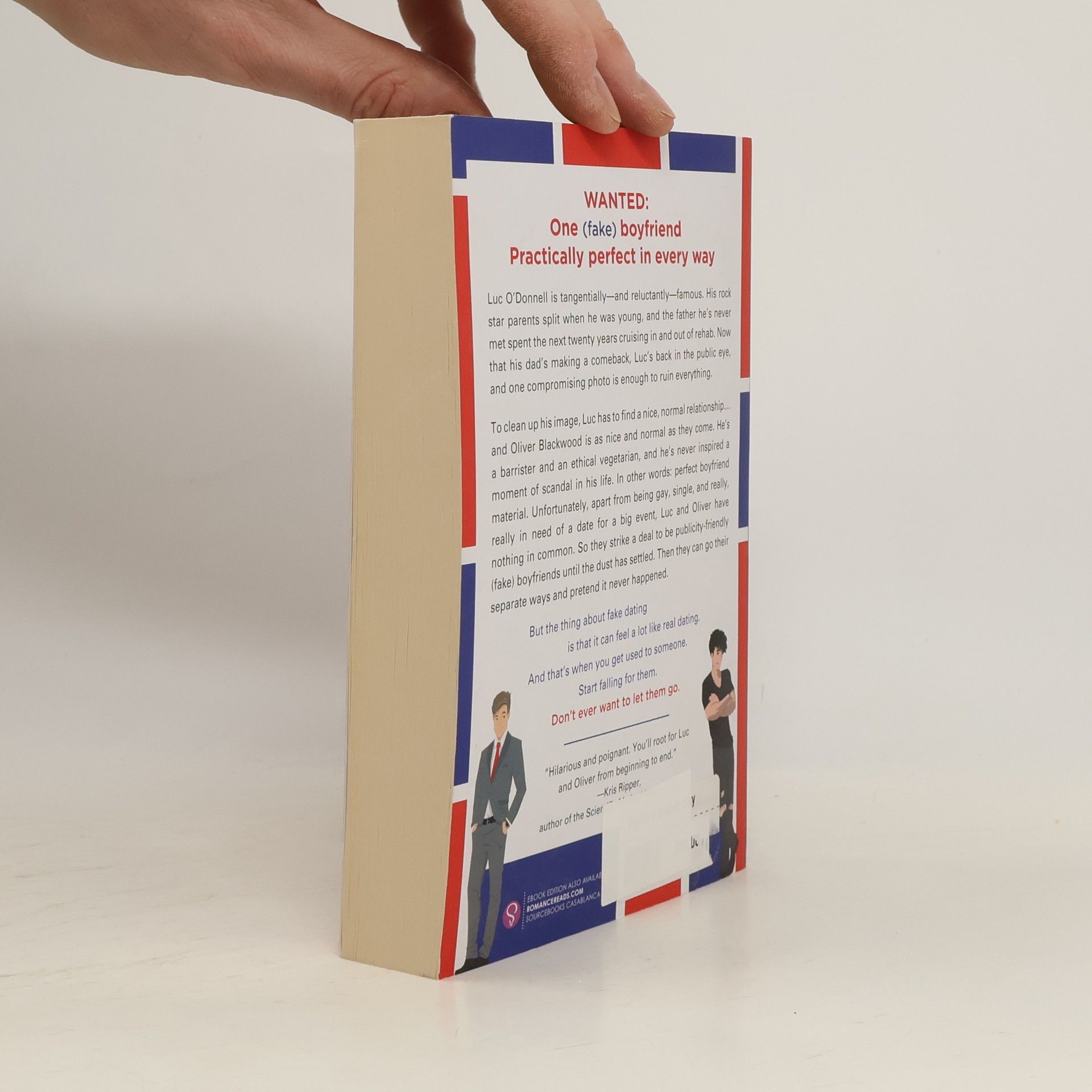 Wanted: One (fake) boyfriend Practically perfect in every way Luc O'Donnell is tangentially--and reluctantly--famous. His rock star parents split when he was young, and the father he's never met spent the next twenty years cruising in and out of rehab. Now that his dad's making a comeback, Luc's back in the public eye, and one compromising photo is enough to ruin everything. To clean up his image, Luc has to find a nice, normal relationship...and Oliver Blackwood is as nice and normal as they come. He's a barrister, an ethical vegetarian, and he's never inspired a moment of scandal in his life. In other words: perfect boyfriend material. Unfortunately apart from being gay, single, and really, really in need of a date for a big event, Luc and Oliver have nothing in common. So they strike a deal to be publicity-friendly (fake) boyfriends until the dust has settled. Then they can go their separate ways and pretend it never happened. But the thing about fake-dating is that it can feel a lot like real-dating. And that's when you get used to someone. Start falling for them. Don't ever want to let them go.