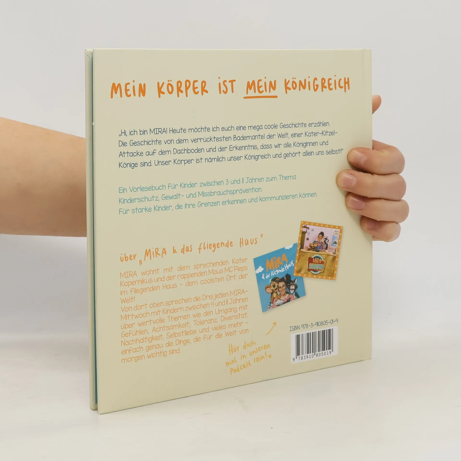 Für starke Kinder zwischen 3 und 11 Jahren, die ihre GRENZEN ERKENNEN und KLAR KOMMUNIZIEREN können.Kinder schützen: Achtsam, verständlich und ganz ohne Ängste zu schüren.Die Geschichte vom verrücktesten Bademantel der Welt, einer Kater-Kitzelattacke auf dem Dachboden und der Erkenntnis, dass wir alle Königinnen und Könige sind. Unser Körper ist nämlich unser Königreich und er gehört allein uns selbst!MIRA, Kopernikus und MC Pieps veranstalten eine mega coole Pyjama-Party auf dem Dachboden als Pieps plötzlich zur Kater-Kitzelattacke ansetzt und sich auf Kopernikus flauschigen Bauch stürzt. Der Kater hält sich den Bauch vor Lachen, doch plötzlich wird sein Gesicht ernst und er ruft: "Stop! Aufhören!"Gemeinsam finden die drei heraus: Wir dürfen immer selbst bestimmen, ob wir gekitzelt, angefasst oder geküsst werden wollen. Unser Körper gehört nämlich allein uns selbst und ist sowas wie unser Königreich! Doch was das Ganze mit guten und schlechten Geheimnissen und einer festlichen Krönungszeremonie zu tun?