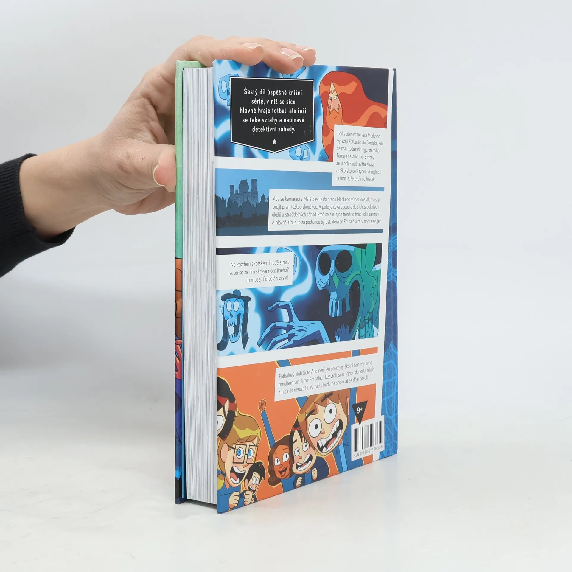 Na každém skotském hradě straší. Nebo je za tím něco jiného? To musí zjistit Fotbaláci! Fotbaláci jedou pod vedením svého trenéra Morleyho do Skotska, kde se mají zúčastnit legendárního Turnaje šesti klanů. Fotbaláci stráví ve Skotsku celý týden, s týmy z celého světa. A nejlepší na tom je, že budou spát na hradě! Budou ovšem muset projít několika těžkými zkouškami, aby se do hradu MacLeod vůbec dostali. Ale proč se jejich trenér o hrad tolik zajímá? A hlavně — co to je za podivnou bytost, která se Fotbalákům každou noc zjevuje? Šestý díl úspěšné série knih, v nichž se sice hlavně hraje fotbal, ale jde také o vztahy a napínavé detektivní záhady.