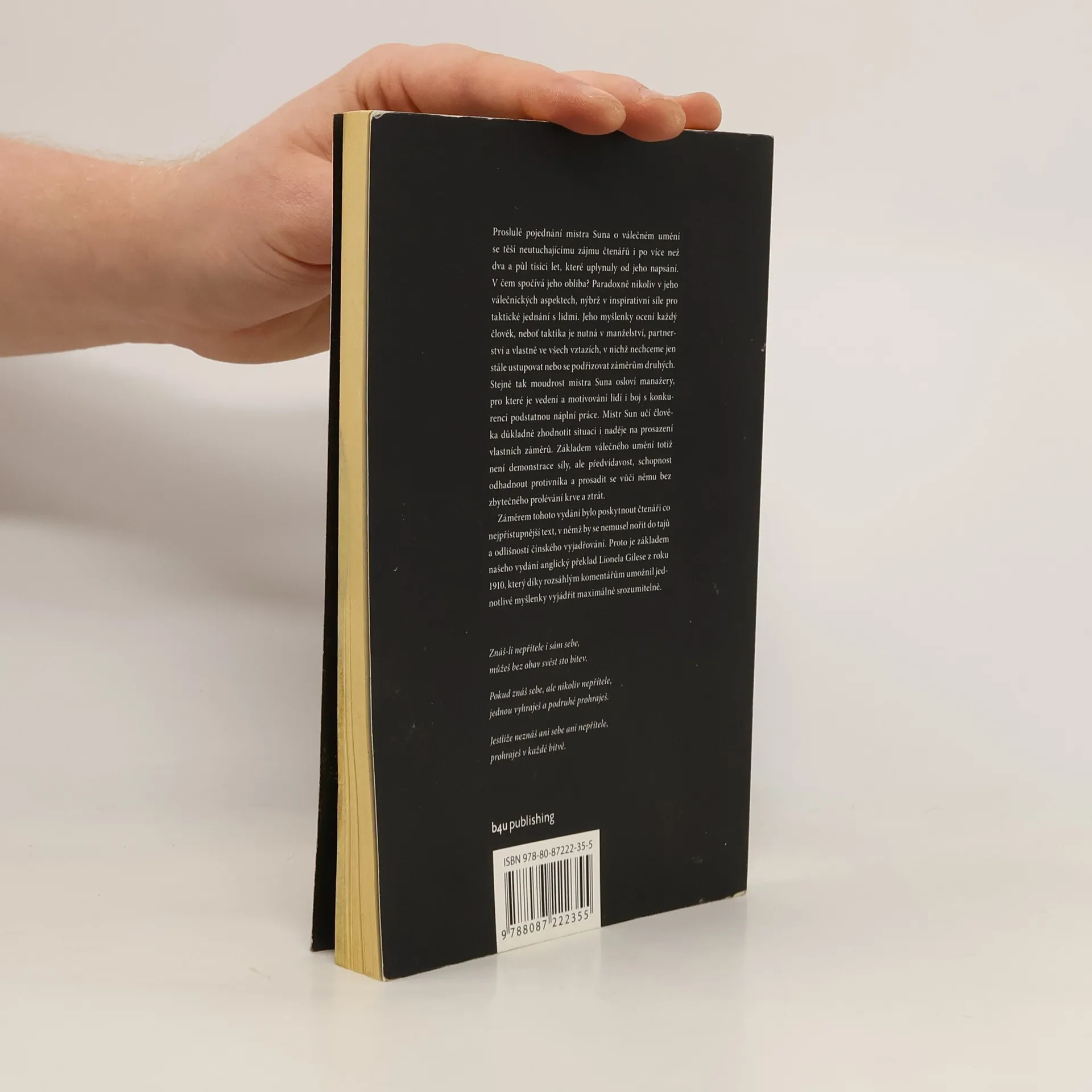 Pojednání Mistra Suna Umění války je nejstarší knihou o strategii boje v dějinách lidstva. Už dva a půl tisíce let představuje pramen inspirace jak pro generály a politiky, tak pro manažery a podnikatele. Toto vydání je výjimečné tím, že starobylé pojednání přímo z čínského originálu přeložil sinolog Vít Vojta a každou kapitolu doplnil aktuálním komentářem zaměřeným na to, jak strategie Umění války využít v podnikání.