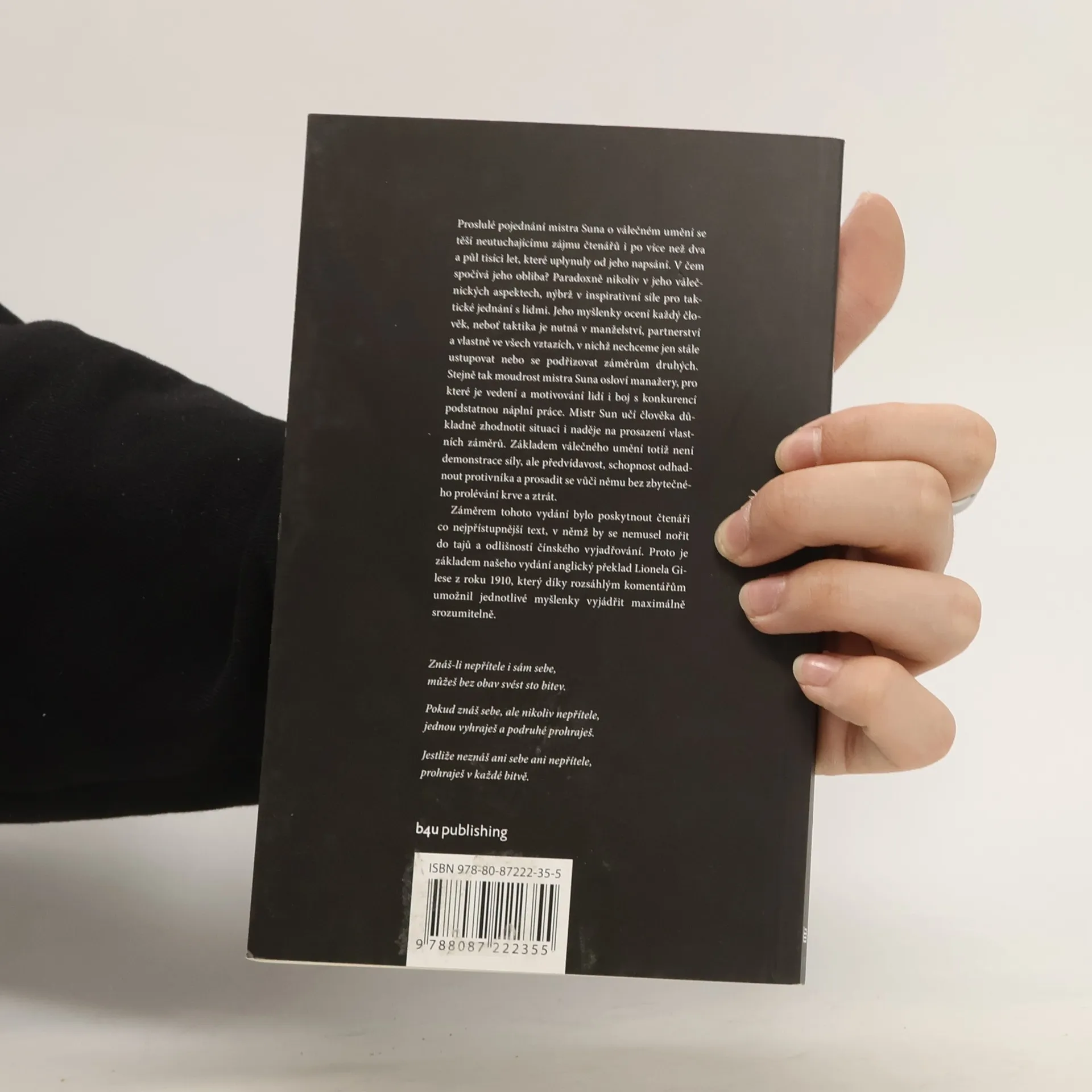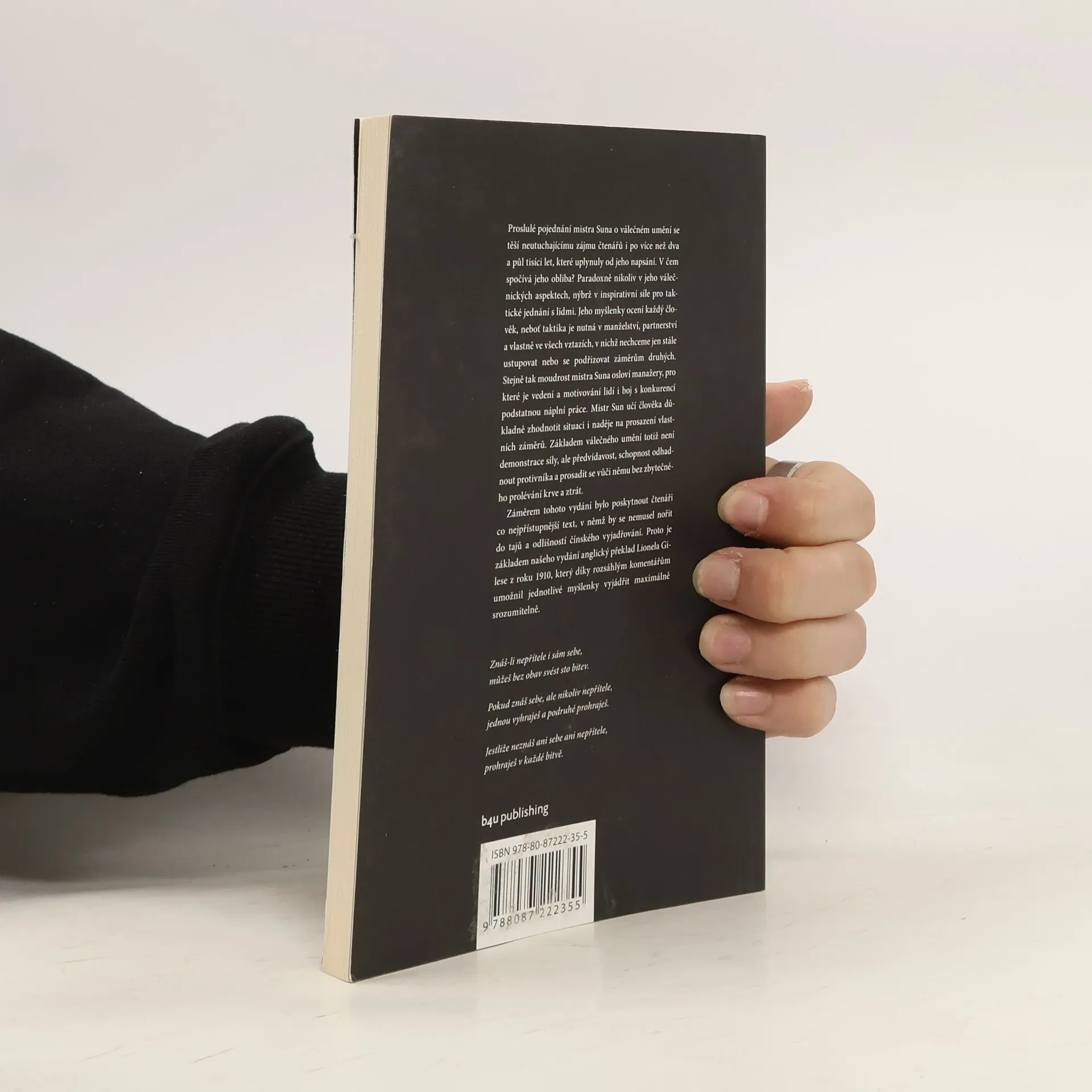 Pojednání Mistra Suna Umění války je nejstarší knihou o strategii boje v dějinách lidstva. Už dva a půl tisíce let představuje pramen inspirace jak pro generály a politiky, tak pro manažery a podnikatele. Toto vydání je výjimečné tím, že starobylé pojednání přímo z čínského originálu přeložil sinolog Vít Vojta a každou kapitolu doplnil aktuálním komentářem zaměřeným na to, jak strategie Umění války využít v podnikání.