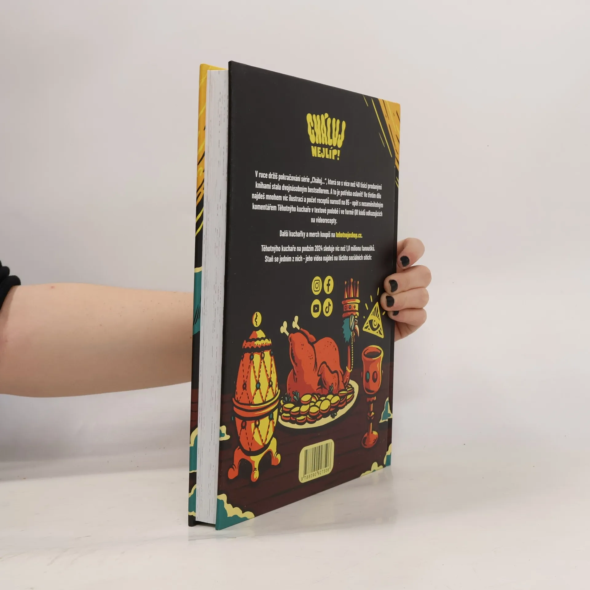 Pokračování bestsellerů "Cháluj líp!" a "Cháluj ještě líp!". To je třetí díl série "Cháluj nejlíp!" s nejlepšími recepty, které kdy Těhotnej kuchař natočil. Kuchařka se nafoukla na 220 stránek, 85 nových receptů a 2x víc ilustrací.