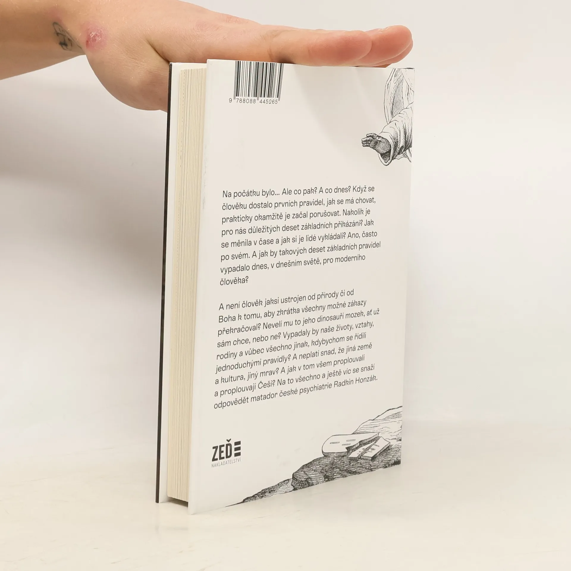 Na počátku bylo… Ale co pak? A co dnes? Když se člověku dostalo prvních pravidel, jak se má chovat, prakticky okamžitě je začal porušovat. Nakolik je pro nás důležitých deset základních přikázání? Jak se měnila v čase a jak si je lidé vykládali? Ano, často po svém. A jak by takových deset základních pravidel vypadalo dnes, v dnešním světě, pro moderního člověka? A není člověk jaksi ustrojen od přírody či od Boha k tomu, aby zkrátka všechny možné zákazy překračoval? Nevelí mu to jeho dinosauří mozek, ať už sám chce, nebo ne? Vypadaly by naše životy, vztahy, rodiny a vůbec všechno jinak, kdybychom se řídili jednoduchými pravidly? A neplatí snad, že jiná země a kultura, jiný mrav? A jak v tom všem proplouvali a proplouvají Češi? Na to všechno a ještě víc se snaží odpovědět matador české psychiatrie Radkin Honzák.