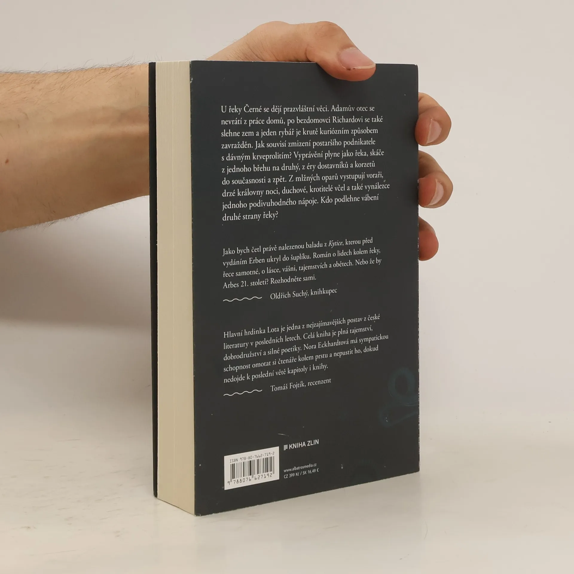 Magický román s téměř arbesovskou atmosférou, rozkročený mezi dvěma světy, současným a minulým, vypráví příběh lásky, vášně a tajemné řeky, která si žádá své oběti. U řeky Černé se dějí prazvláštní věci. Adamův otec se nevrátí z práce domů, po bezdomovci Richardovi se také slehne zem a jeden rybář je krutě kuriózním způsobem zavražděn. Jak souvisí zmizení postaršího podnikatele s dávným krveprolitím? Vyprávění plyne jako řeka, skáče z jednoho břehu na druhý, z éry dostavníků a korzetů do současnosti a zpět. Z mlžných oparů vystupují voraři, drzé královny noci, duchové, krotitelé včel a také vynálezce jednoho podivuhodného nápoje. Nakladatelská anotace. Kráceno.