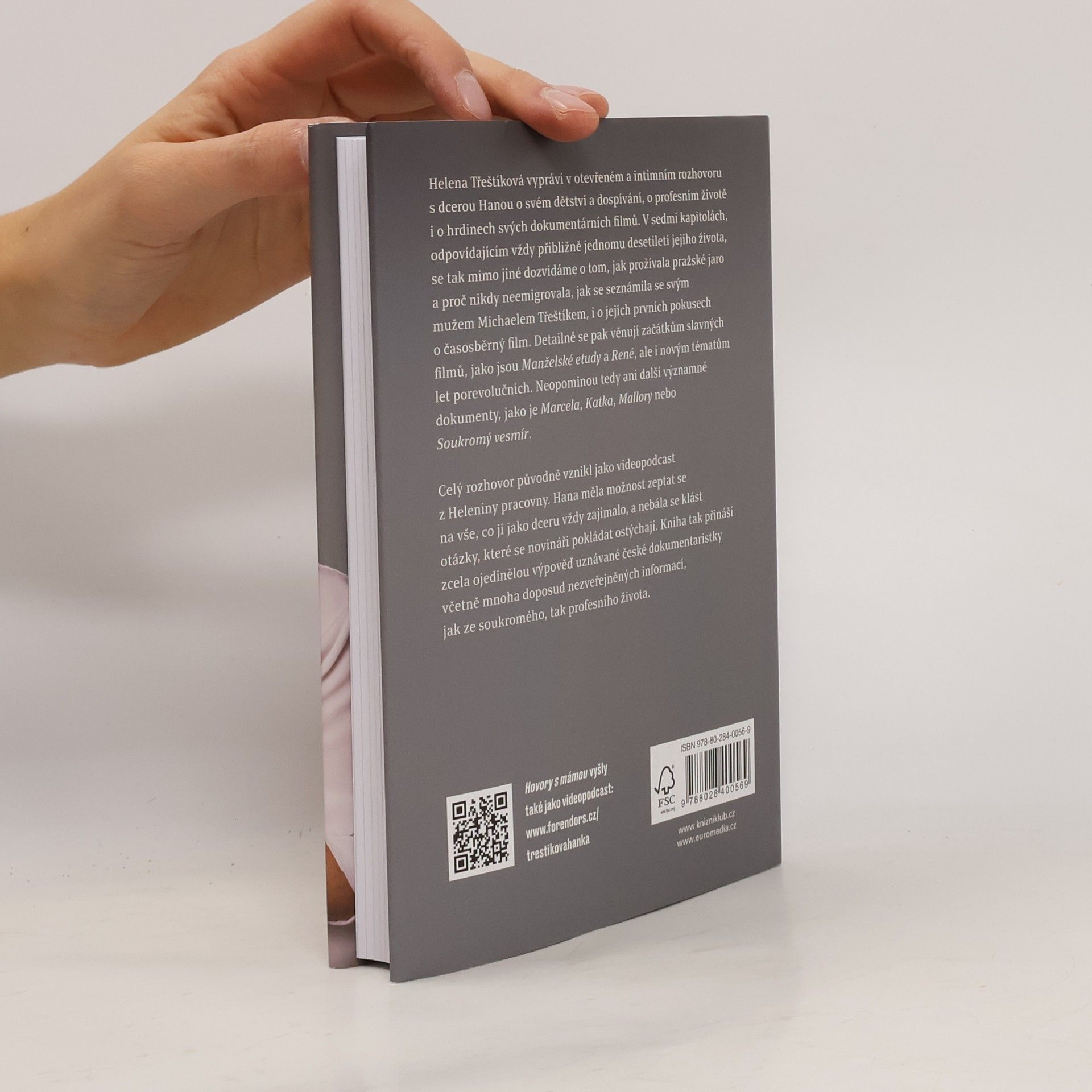 Helena Třeštíková vypráví v otevřeném a intimním rozhovoru s dcerou Hanou o svém dětství a dospívání, profesním životě i o hrdinech svých dokumentárních filmů. V sedmi kapitolách odpovídajícím vždy přibližně jednomu desetiletí jejího života se tak mimo jiné dozvídáme o tom, jakprožívala pražské jaro a proč nikdy neemigrovala, jak se seznámila se svým mužem Michaelem Třeštíkem i o jejích prvních pokusech o časosběrný film. Detailně se pak věnují začátkům slavných filmů, jako jsou Manželské etudy a René, ale i novým tématům let porevolučních. Neopominou tedy ani další významné dokumenty, jako je Marcela, Katka, Mallory nebo Soukromý vesmír. Celý rozhovor původně vznikl jako videopodcast z Heleniny pracovny. Hana měla možnost zeptat se na vše, co ji jako dceru vždy zajímalo, a nebála se klást otázky, které se novináři pokládat ostýchají. Kniha tak přináší zcela ojedinělou výpověď uznávané české dokumentaristky včetně mnoha doposud nezveřejněných informací jak ze soukromého, tak profesního života.