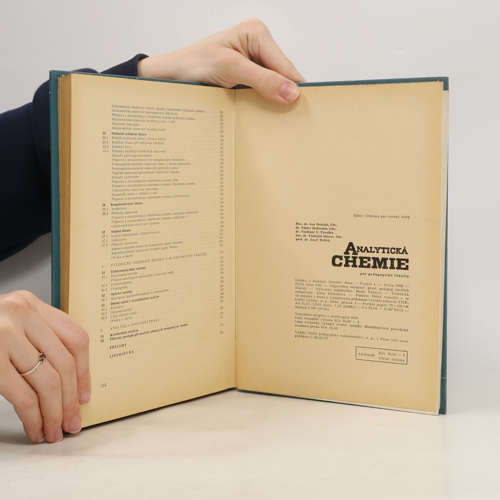 Analytická chemie, Jan Doležal, Viktor Hofmann, Vladimír Václav Pavelka, Vladimír Simon, Josef Trtílek