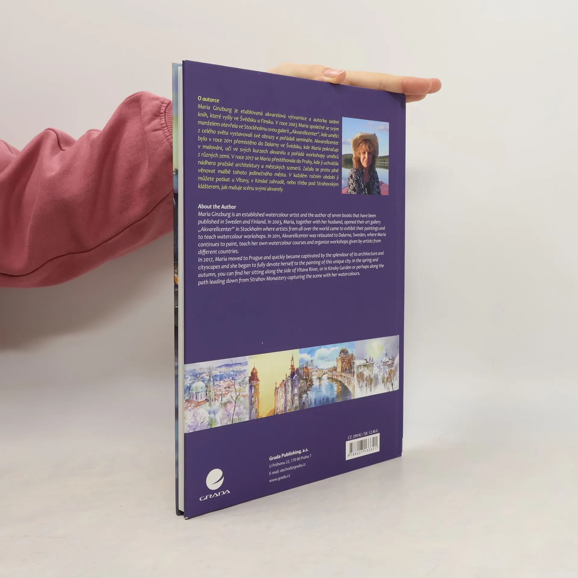 Rozsah a obsah: Kniha je určena všem, kteří malují, nebo se chtějí naučit základům akvarelové malby, a také pro všechny zájemce o umění a milovníky Prahy. Kniha obsahuje základní teorii a praktické tipy s cvičeními a snadno proveditelné, podrobné pokyny, jak malovat toto krásné město. Autorka ukáže, jak dobře zpodobnit nejen známé architektonické prvky, jako jsou kupole, věže, mosty, ale také jak zachytit různé podoby oblohy, vody a odrazy na řece. A jak krásnou Prahu malovat i v noci, v kavárnách, v parcích, v panoramatických výhledech z pražských kopců nebo ze střešních teras. K českému textu je připojený i text v angličtině.