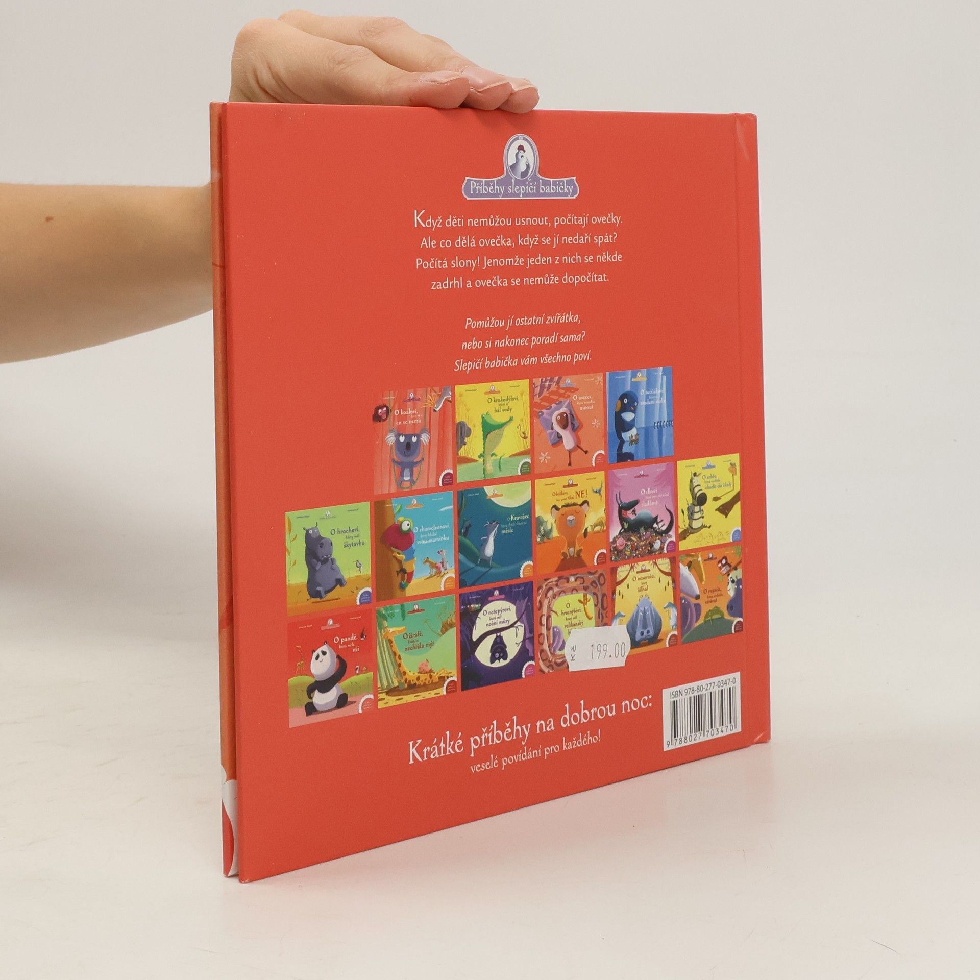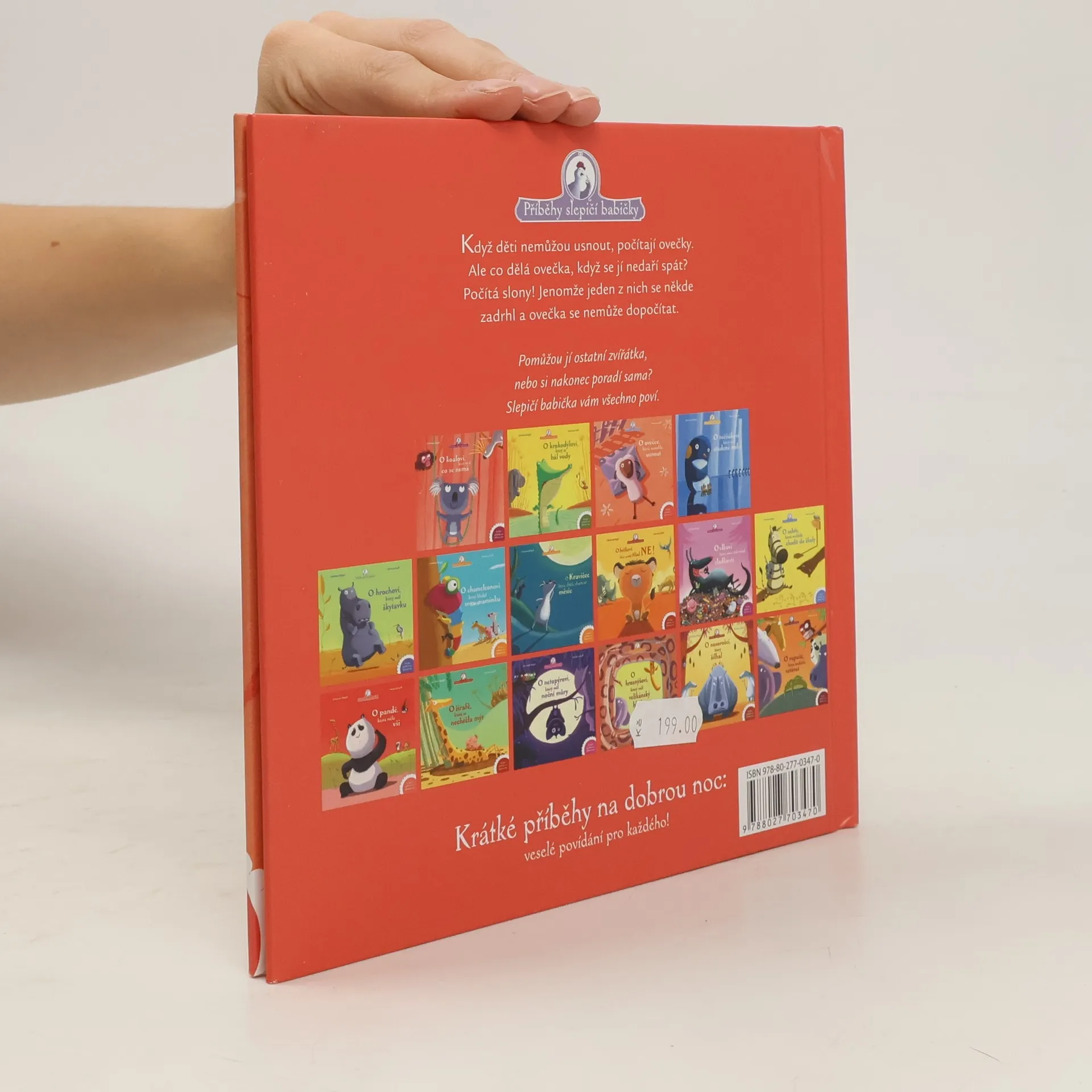 Když děti nemůžou usnout, počítají ovečky. Ale co dělá ovečka, když se jí nedaří spát? Počítá slony! Jenomže jeden z nich se někde zadrhl a ovečka se nemůže dopočítat. Pomůžou jí ostatní zvířátka, nebo si nakonec poradí sama? Slepičí babička vám všechno poví.