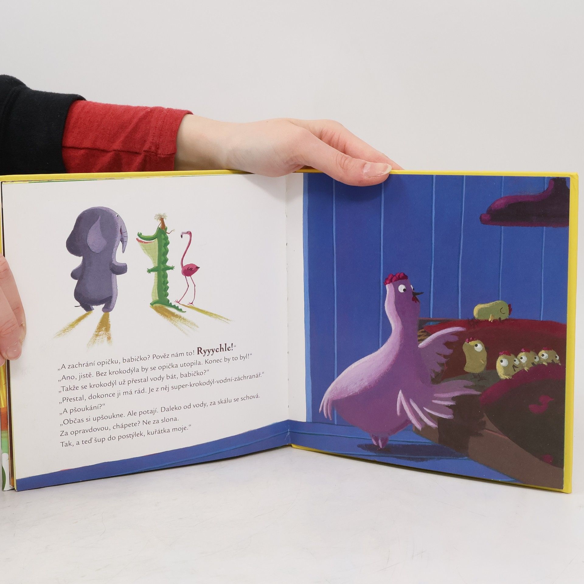 Krokodýli milují vodu. Až na jednoho. Tenhle krokodýl se vody bojí. Tak moc, že když ji jen vidí, strachy z toho pšouká. Ostatním zvířátkům to nedělá žádnou radost. Co vymyslí, aby se krokodýl svého zlozvyku zbavil? Podaří se jim to? Slepičí babička vám všechno poví.
