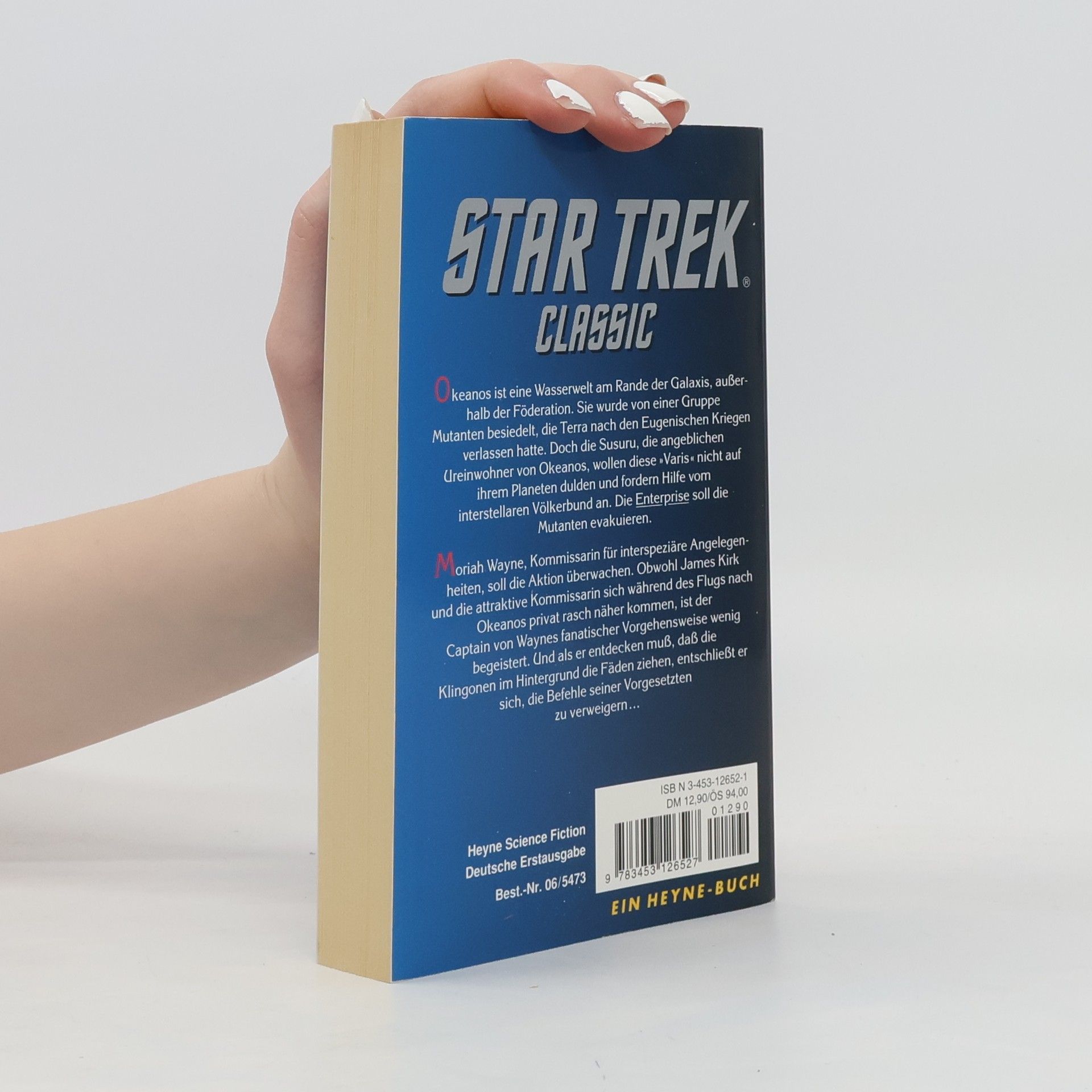 Okeanos ist eine Wasserwelt am Rande der Galaxis, außerhalb der Föderation. Sie wurde von einer Gruppe Mutanten besiedelt, die Terra nach den Eugenischen Kriegen verlassen hatte. Doch die Susuru, die angeblichen Ureinwohner Okeanos, wollen diese "Varis" nicht auf ihrem Planeten dulden und fordern Hilfe vom interstellaren Völkerbund an. Die Enterprise soll die Mutanten evakuieren. Moriah Wayne, Kommissarin für interspeziäre Angelegenheiten, soll die Aktion überwachen. Obwohl James Kirk und die attraktive Kommissarin sich während des Flugs nach Okeanos privat rasch näher kommen, ist der Captain von Waynes fanatischer Vorgehensweise wenig begeistert. Und als er entdecken muß, daß die Klingonen im Hintergrund die Fäden ziehen, entschließt er sich, die Befehle seiner Vorgesetzten zu verweigern...