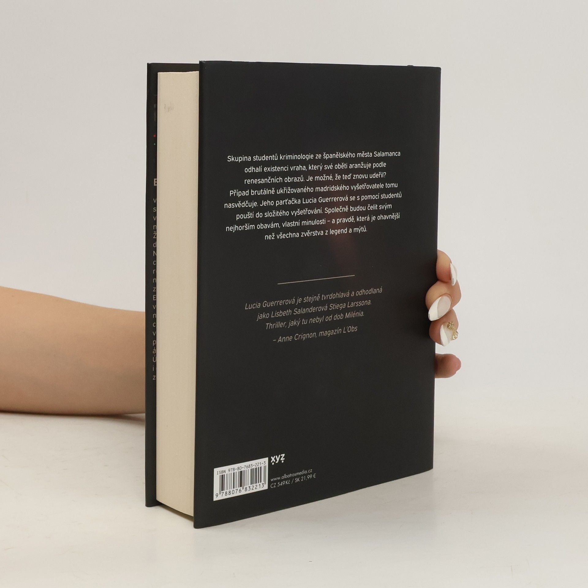 Zlo se nezastaví před ničím. Proto ho musí zastavit ona. Skupina studentů kriminologie ze španělského města Salamanca odhalí existenci vraha, který své oběti aranžuje podle renesančních obrazů. Je možné, že teď znovu udeřil? Případ brutálně ukřižovaného madridského vyšetřovatele tomu nasvědčuje. Jeho parťačka Lucia Guerrero se s pomocí studentů pouští do složitého vyšetřování. Společně budou čelit svým nejhorším obávám, vlastní minulosti – a pravdě, která je ohavnější než všechna zvěrstva z legend a mýtů.Skupina studentů kriminologie na univerzitě v Salamance odhalí existenci vraha, který už několik desetiletí uniká spravedlnosti a aranžuje své oběti podle renesančních obrazů.Vyšetřovatelka Lucia Guerrero najde v Madridu svého parťáka ukřižovaného na Kalvárii a vydá se po stopě jeho vraha.Všichni jsou konfrontováni se svou vlastní minulostí, se svými nejhlubšími hrůzami a s pravdou ohavnější než všechny legendy a mýty.