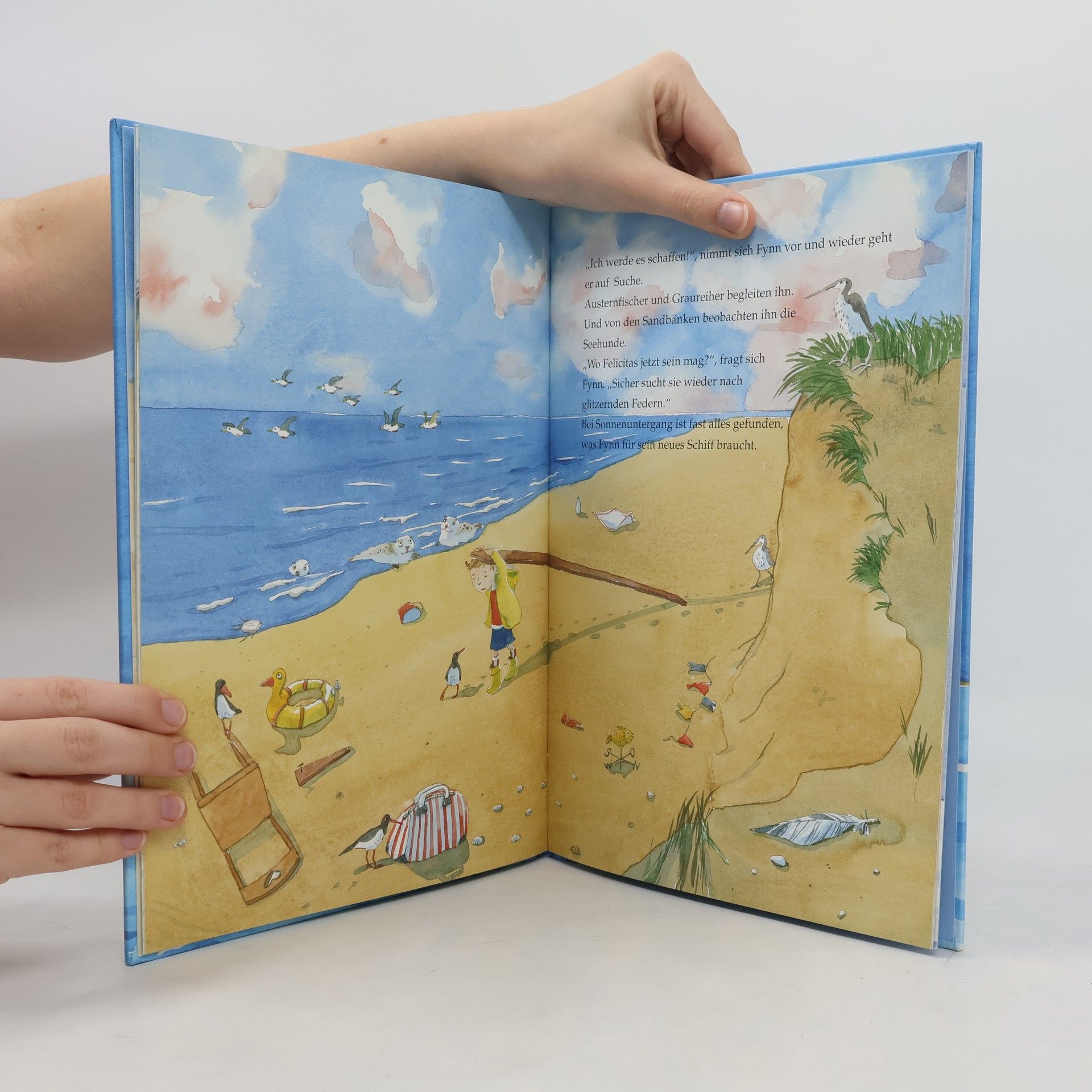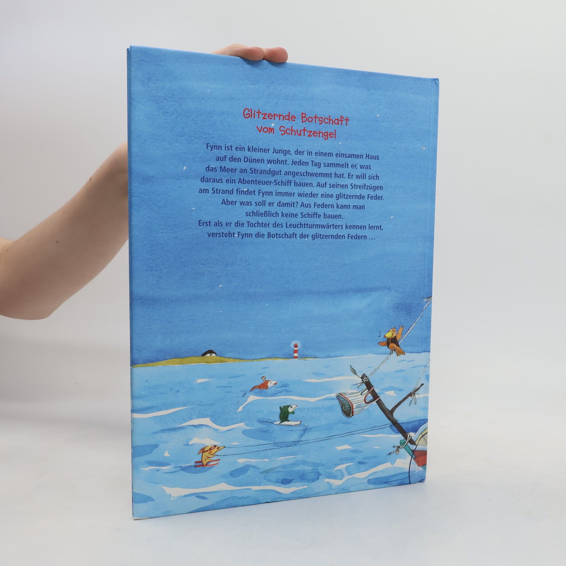 Der kleine Fynn lebt an der Nordsee und sammelt am Strand Schätze, darunter eine glitzernde weiße Feder. Durch die Bekanntschaft mit Felicitas, der Tochter des Leuchtturmwärters, entdeckt er, dass ein Schutzengel ihr Selbstvertrauen schenkt und erkennt, dass auch er auf einen Engel vertrauen kann.