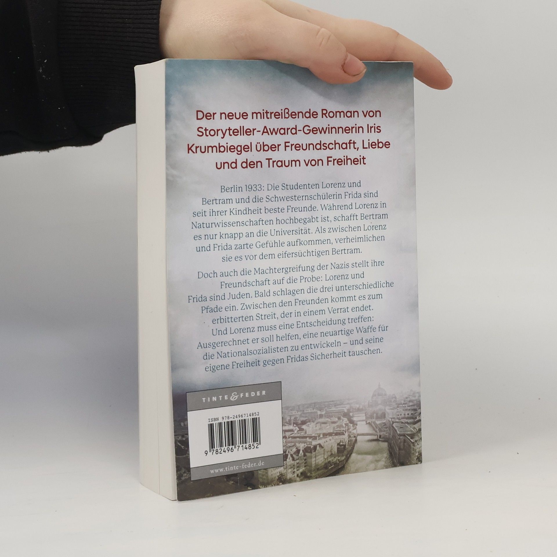 Der neue Roman von Iris Krumbiegel erzählt von Freundschaft, Liebe und dem Traum von Freiheit im Berlin von 1933. Die besten Freunde Lorenz, Bertram und Frida müssen sich angesichts der Nazi-Herrschaft und persönlicher Konflikte entscheiden, wobei Verrat und schwierige Entscheidungen ihre Beziehungen auf die Probe stellen.