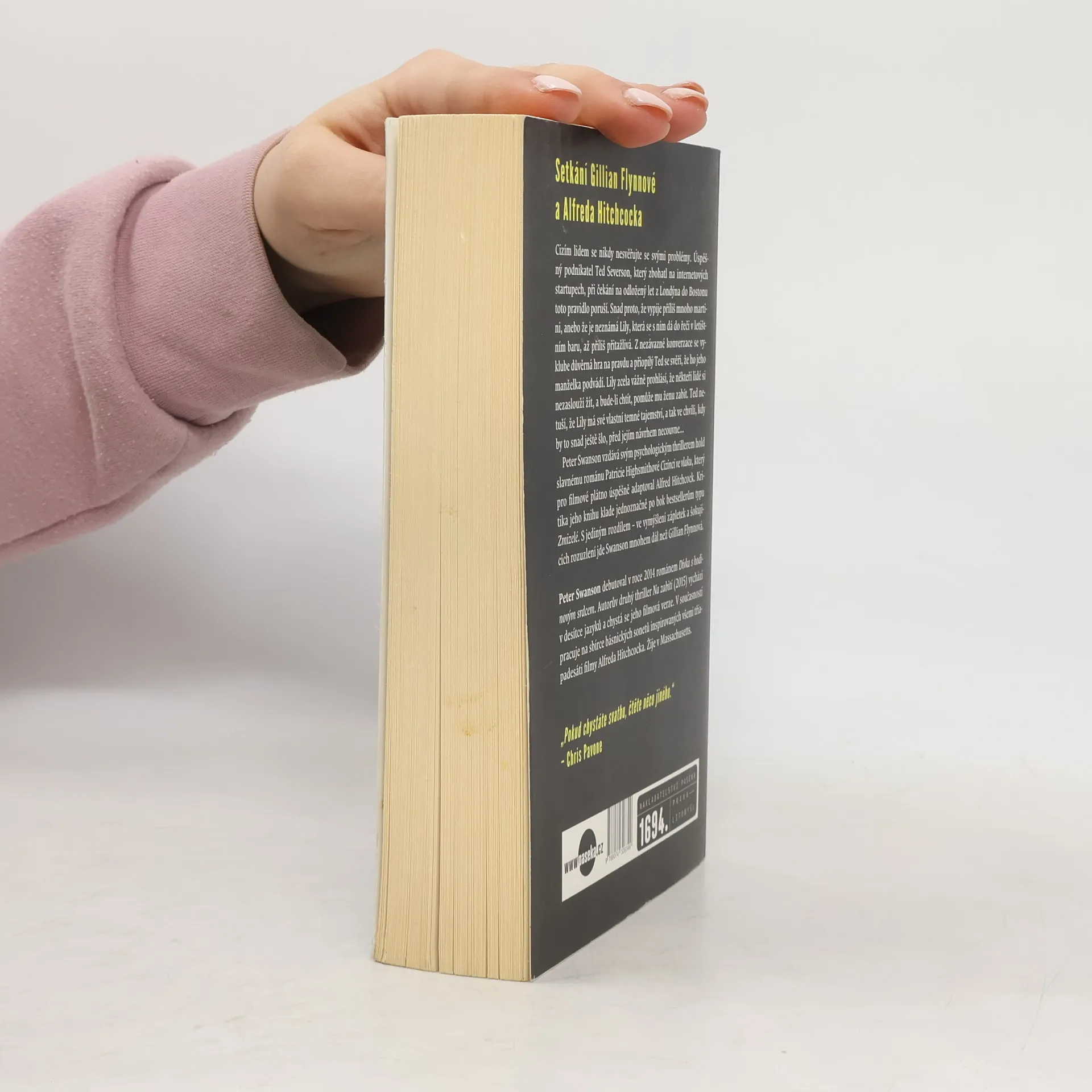 Cizím lidem se nikdy nesvěřujte se svými problémy. Úspěšný mladý muž Ted Severson, který zbohatl na internetových start-upech, při nočním letu z Londýna do Bostonu toto pravidlo poruší. Omluvou mu může být, že vypil příliš mnoho martini, a pak také to, že neznámá Lily, s níž se dá do řeči, se mu zdá až příliš přitažlivá. Z nezávazné konverzace se vyklube důvěrná hra na pravdu - a opilý Ted se v letadle svěří, že ho jeho manželka podvádí. Lily mu na oplátku navrhne, že jeho nevěrnou ženu zabije. Ted netuší, že Lily má své vlastní vražedné tajemství, a tak ve chvíli, kdy by to snad ještě šlo, před jejím návrhem necouvne… Peter Swanson vzdává svým psychologickým thrillerem hold slavnému románu Patricie Highsmithové Cizinci ve vlaku a americká kritika jeho knihu klade jednoznačně po bok bestsellerům typu Zmizelé. S jediným rozdílem - Peter Swanson jde mnohem dál.