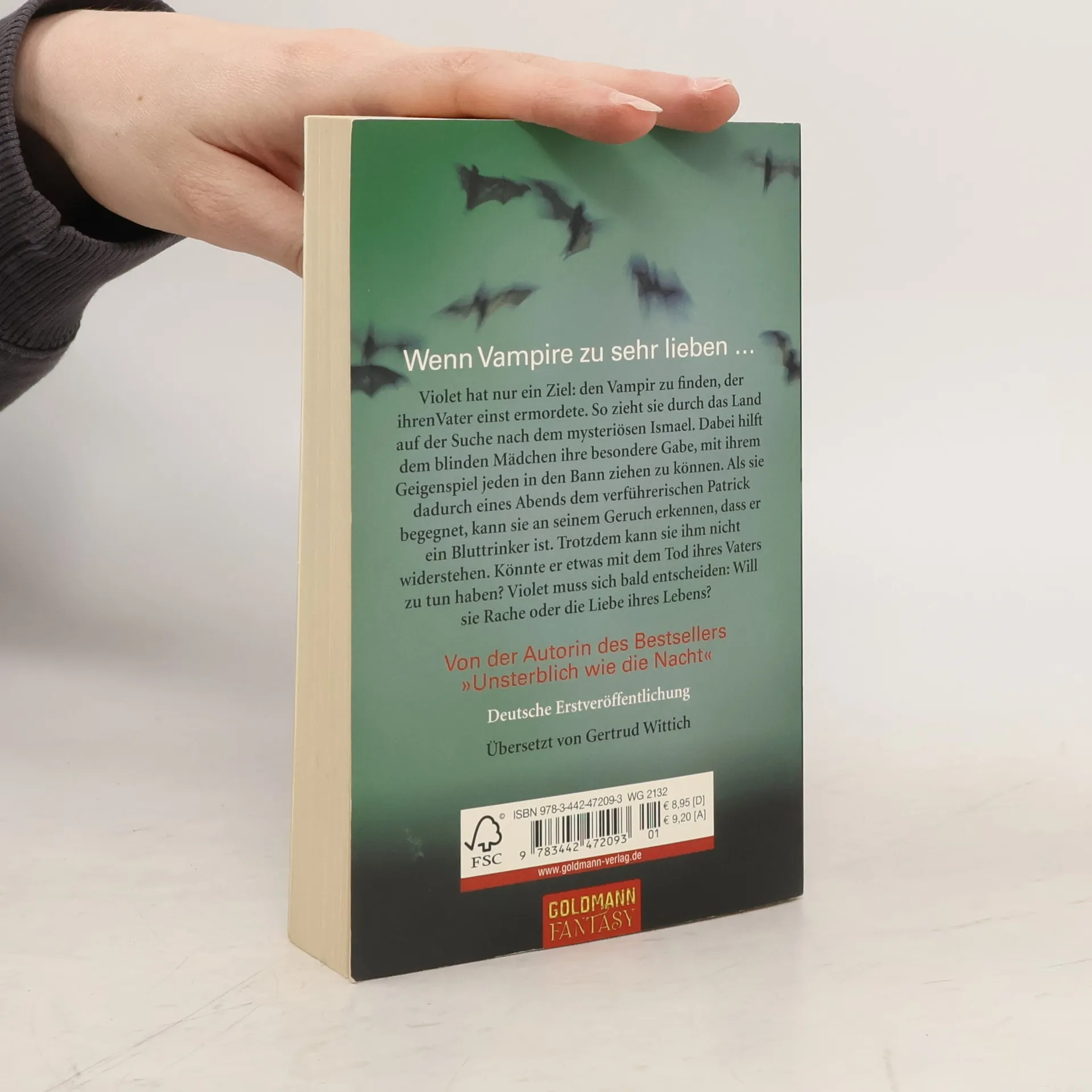 Violet sucht den Vampir Ismael, der ihren Vater ermordete. Mit ihrer besonderen Gabe, die Menschen durch ihr Geigenspiel zu verzaubern, trifft sie auf den verführerischen Patrick, dessen vampirische Natur sie erkennt. Sie muss wählen zwischen Rache und der Liebe ihres Lebens. Ein Liebesroman mit einem besonderen Twist.