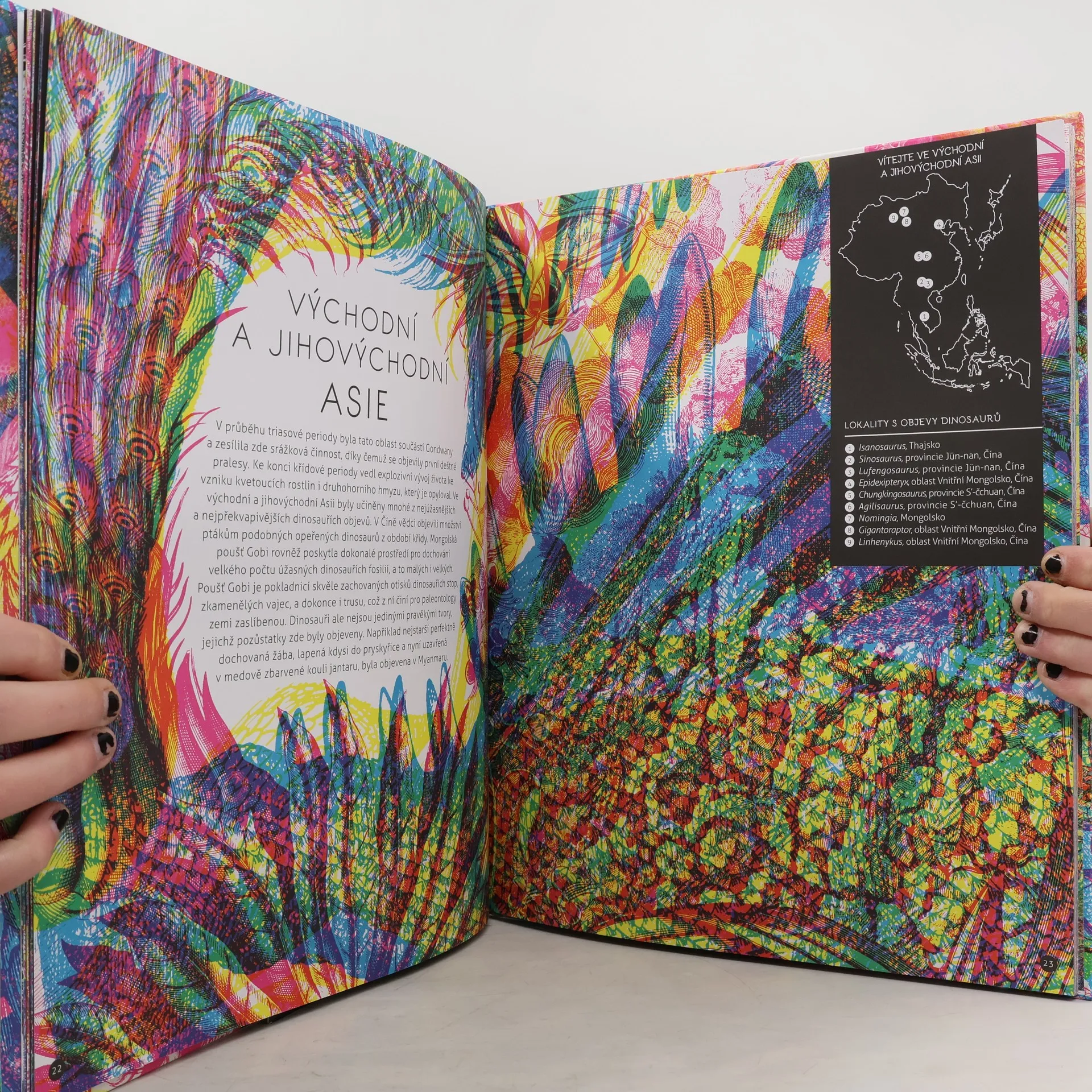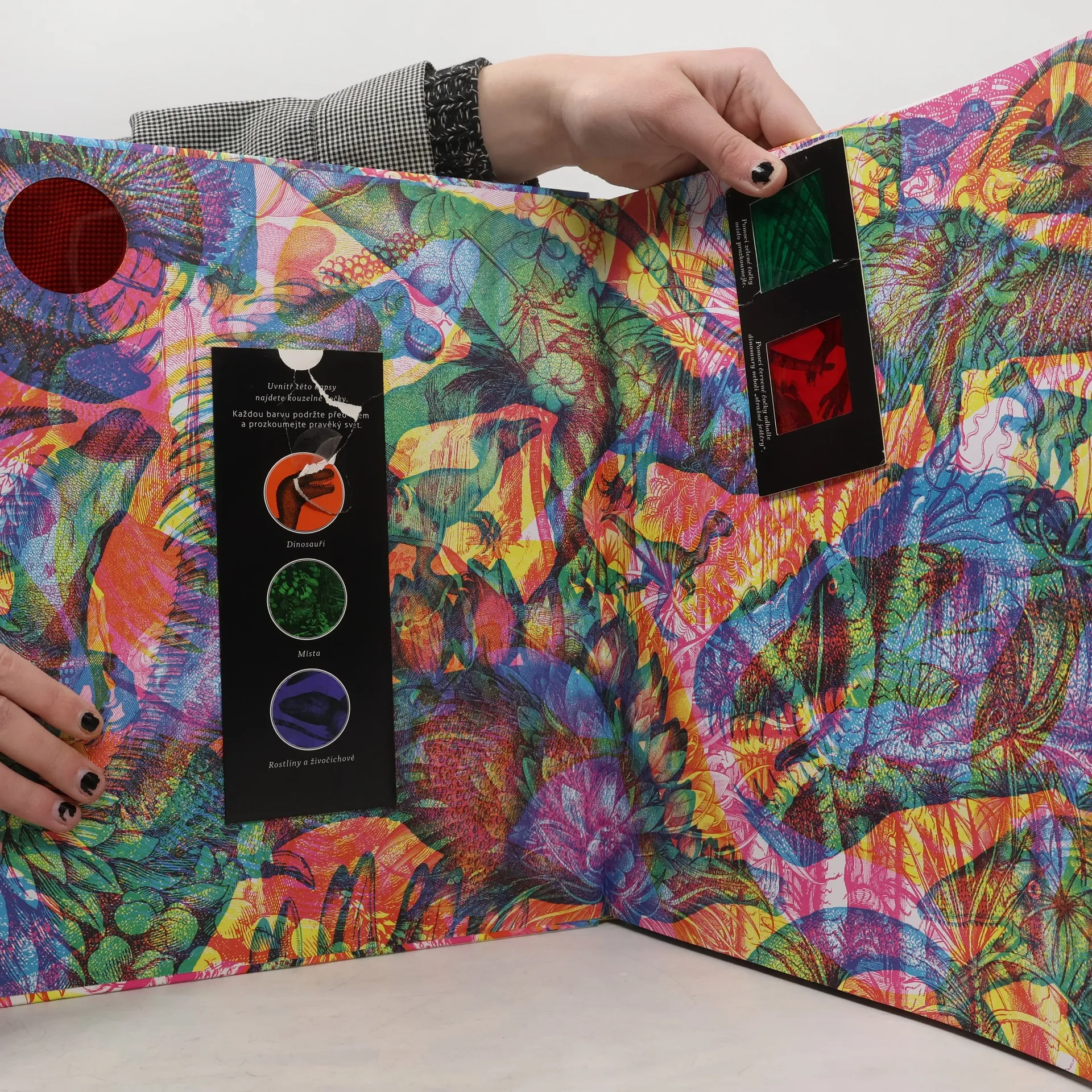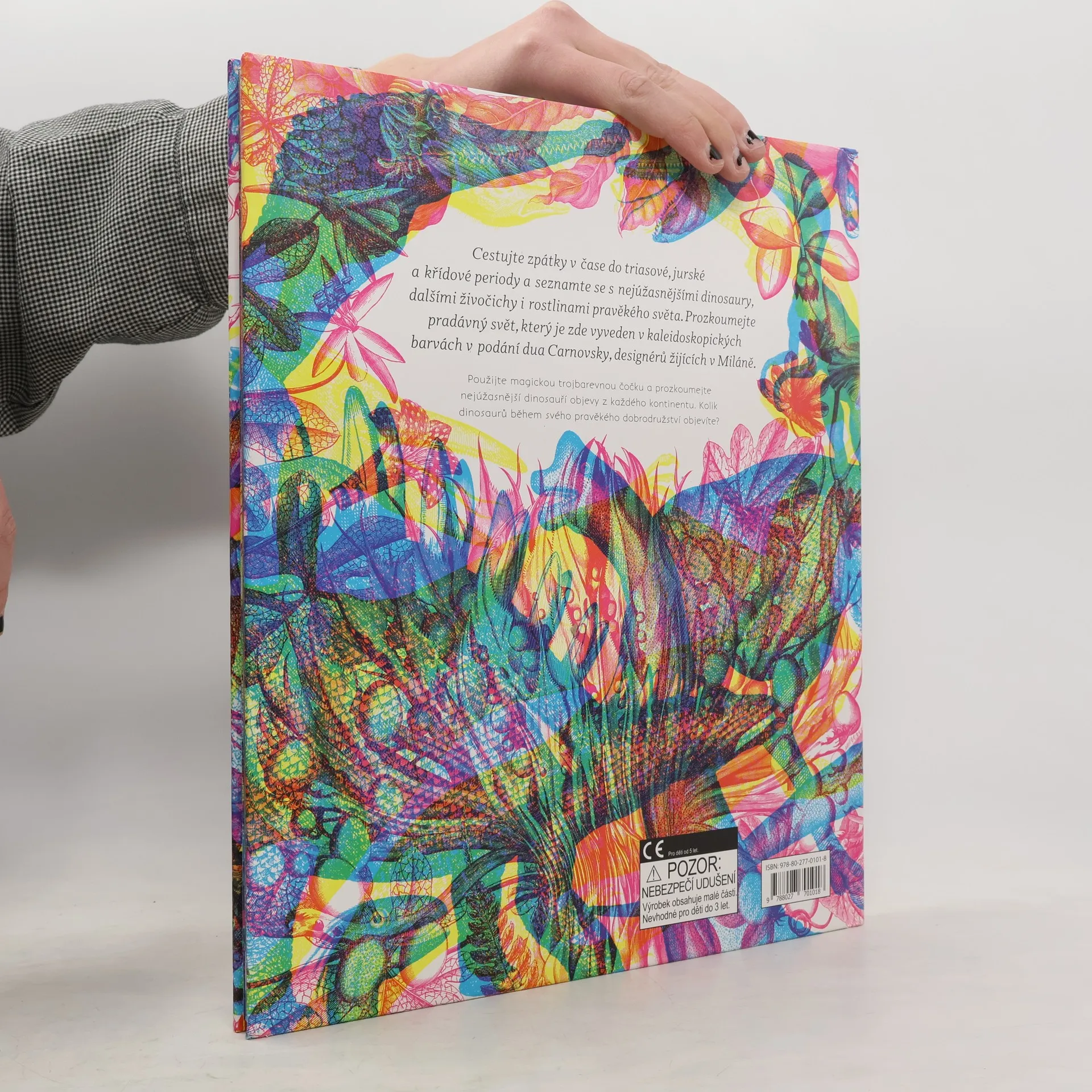 Cestuj zpátky v čase do triasové, jurské a křídové periody a seznam se s nejúžasnějšími dinosaury, dalšími živočichy i rostlinami pravěkého světa. Prozkoumej pradávný svět barevným kaleidoskopem dvojice designérů z Milána, Carnovsky. Použijte magickou trojbarevnou čočku a prozkoumejte nejúžasnější dinosauří objevy z každého kontinentu. Kolik dinosaurů během svého pravěkého dobrodružství objevíte?