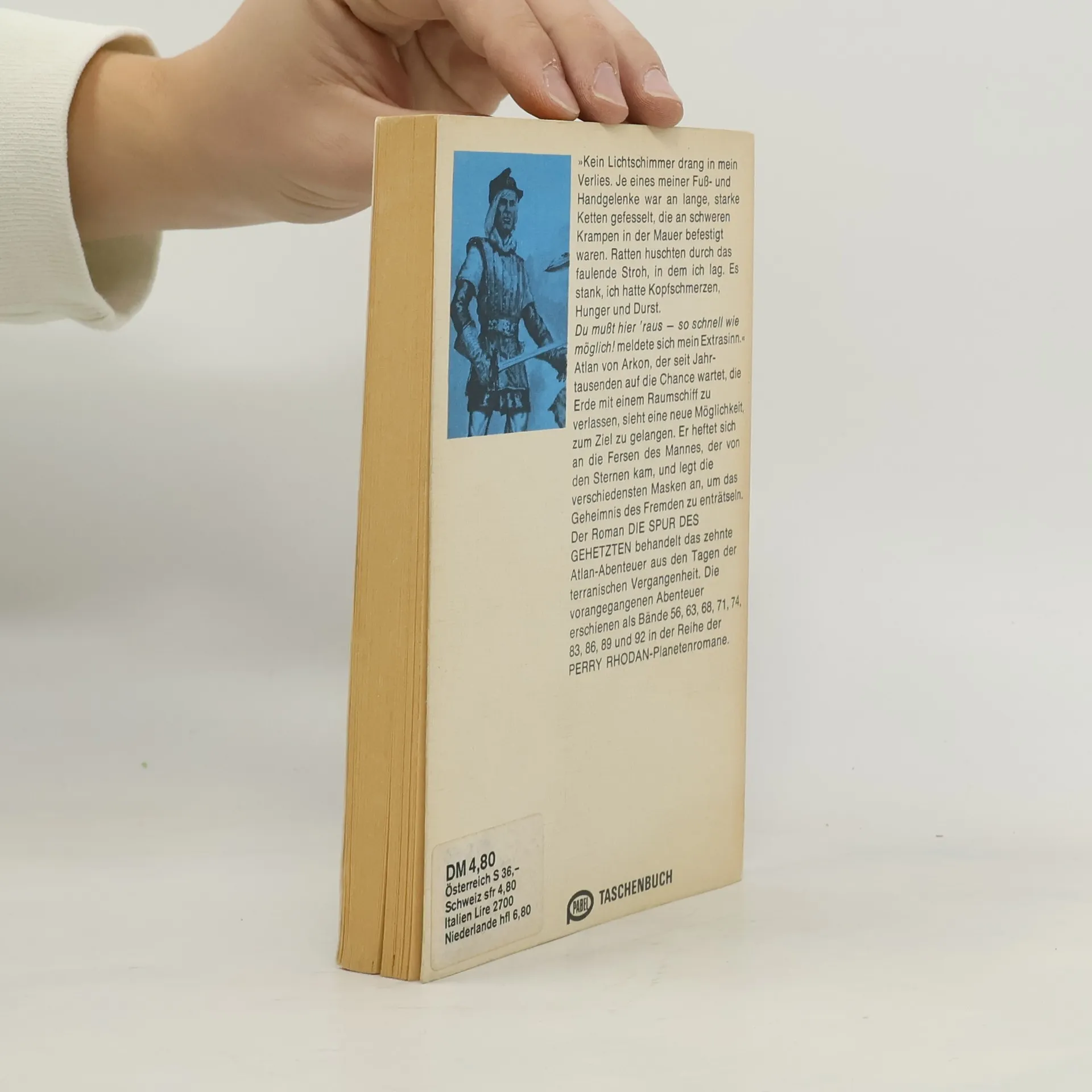 Das chronologisch 39. Atlan-ZeitabenteuerDer Kristallprinz von Arkon in vielen Masken – auf der Jagd nach dem Mann, der von den Sternen kam»Kein Lichtschimmer drang in mein Verlies. Je eines meiner Fuß- und Handgelenke war an lange, starke Ketten gefesselt, die an schweren Krampen in der Mauer befestigt waren. Ratten huschten durch das faulende Stroh, in dem ich lag.Es stank, ich hatte Kopfschmerzen, Hunger und Durst. »Du mußt hier raus - so schnell wie möglich!« meldete sich mein Extrasinn.«Atlan von Arkon, der seit Jahrtausenden auf eine Chance wartet, die Erde mit einem Raumschiff zu verlassen, sieht eine neue Möglichkeit, zum Ziel zu gelangen.Er heftet sich an die Fersen des Mannes, der von den Sternen kam, und legt die verschiedensten Masken an, um das Geheimnis des Fremden zu enträtseln.Der Roman DIE SPUR DES GEHETZTEN behandelt das zehnte Atlan-Abenteuer aus den Tagen der terranischen Vergangenheit. Die vorangegangenen Abenteuer erschienen als Bände 56, 63, 68, 71, 74, 83, 86, 89 und 92 in der Reihe der PERRY RHODAN-Planetenromane.