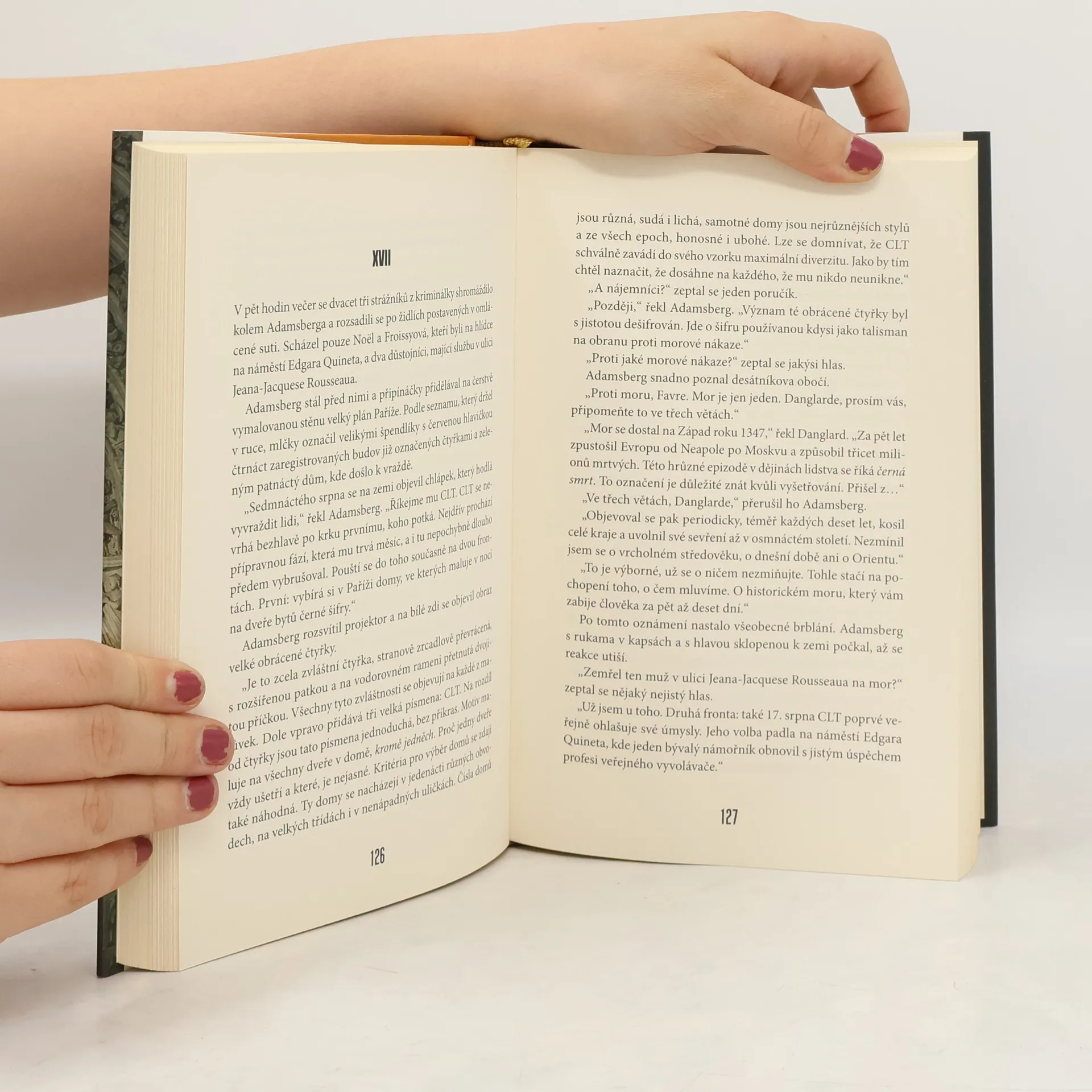 "Komisař Adamsberg se za pomoci svých poněkud neotřelých metod (a též za pomoci poněkud zvláštního kolegy Danglarda) pokouší přijít na kloub záhadě, která jako by se do dnešních dní vyloupla ze středověku. Začíná to celkem nenápadně: nejprve vysloužilý bretonský námořník Joss, jenž na jednom pařížském náměstíčku obnovil pradávné vyvolávačské řemeslo, začne mezi zprávami, které má oznámit světu, nacházet podivné, těžko srozumitelné a temné vzkazy. Poté kdosi na dveře ve vybraných domech čmárá tajemné obrácené čtyřky. A pak se začnou objevovat mrtvoly…