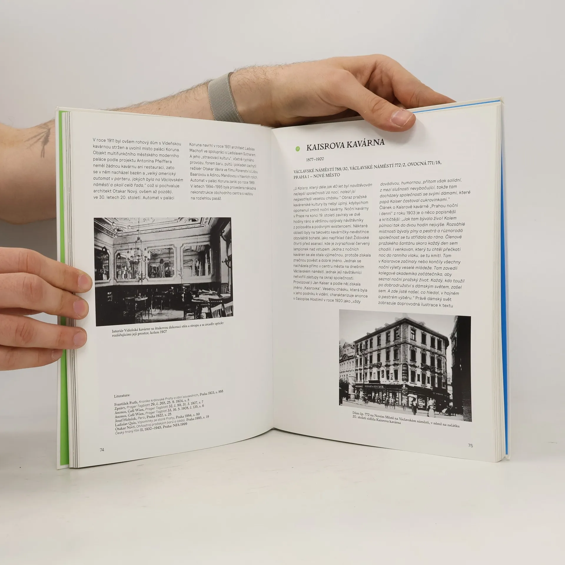 Kavárenská tradice je v Čechách stará více než tři sta let. Nedílně patří k formování života a kultury české společnosti. V kavárnách se zakládala umělecká hnutí a spolky, kavárenský život obohatil literaturu, divadlo i politiku. Kavárny navštěvovali Franz Kafka, Milena Jesenská, Jan Zrzavý, Adolf Hoffmeister i Václav Havel. Kavárny jsou svědky doby, odráží se v nich dobový vkus i atmosféra. Putování po historii počínající rokem 1713 mapuje historii národa, architektury a umění. Kniha představuje současnost na vrstvách minulosti. Pátrá po zaniklých podnicích, z nichž nám zůstaly jen vzpomínky či nenápadné stopy, připomíná dlouhou historii stálic kavárenského nebe a objevuje nová zajímavá místa.